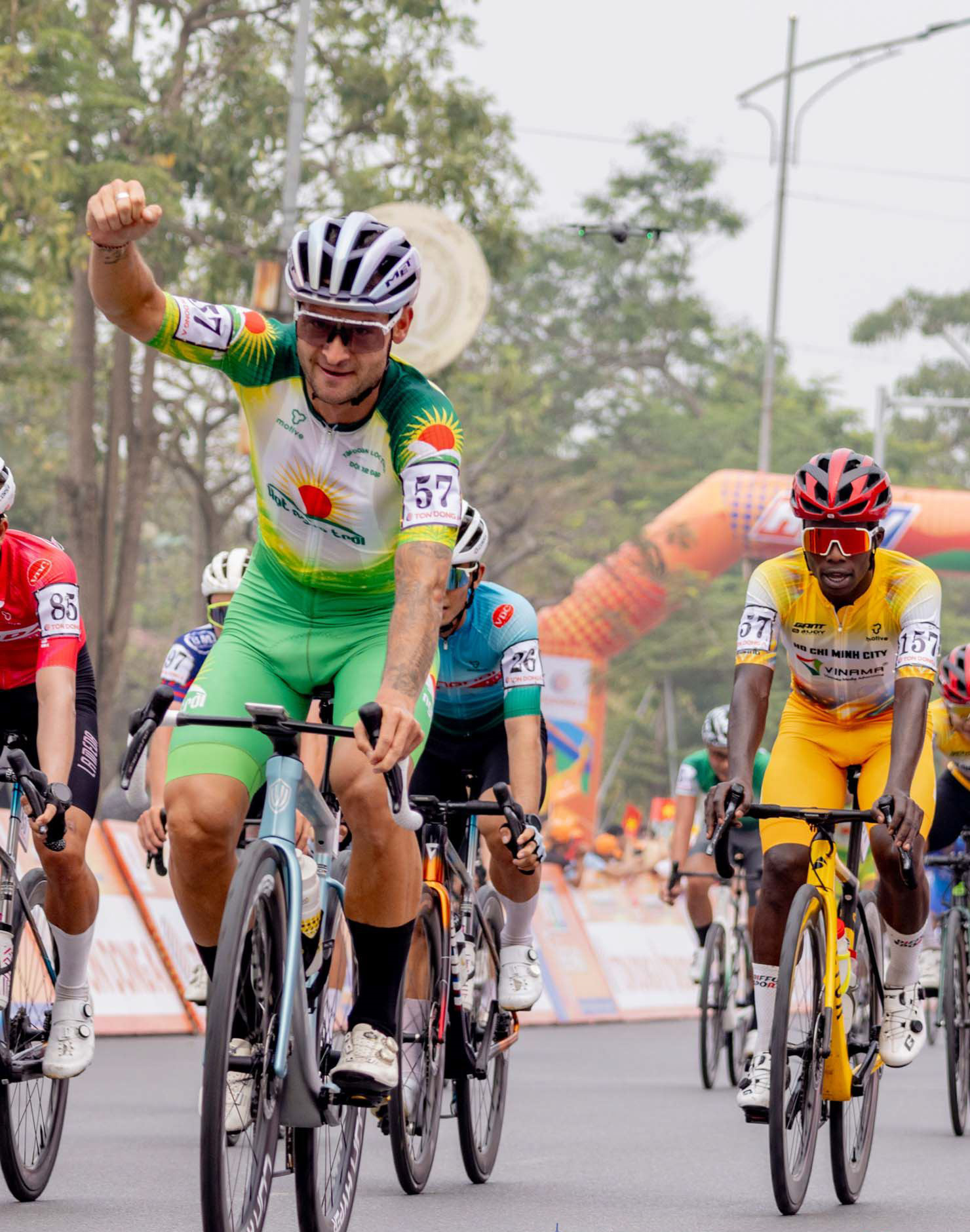 Tay đua Sergei Kulikov mừng chiến thắng chặng 1. Ảnh: HTV