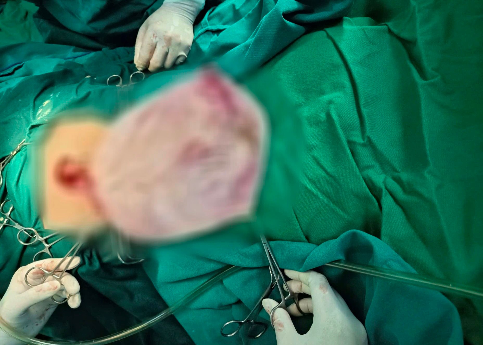 Trong quá trình mổ, kíp trực đối mặt với thách thức lớn khi khối u có kích thước quá khổ và dính chặt vào các cơ quan lân cận. Để đảm bảo an toàn tối đa, các bác sĩ đã thực hiện phương án chọc hút dịch trước để giảm áp lực, rút thành công hơn 7 lít dịch nhầy loãng ra khỏi cơ thể bệnh nhân.
