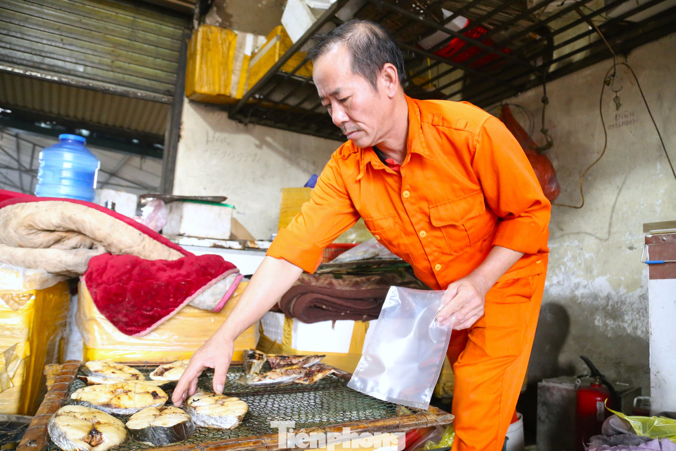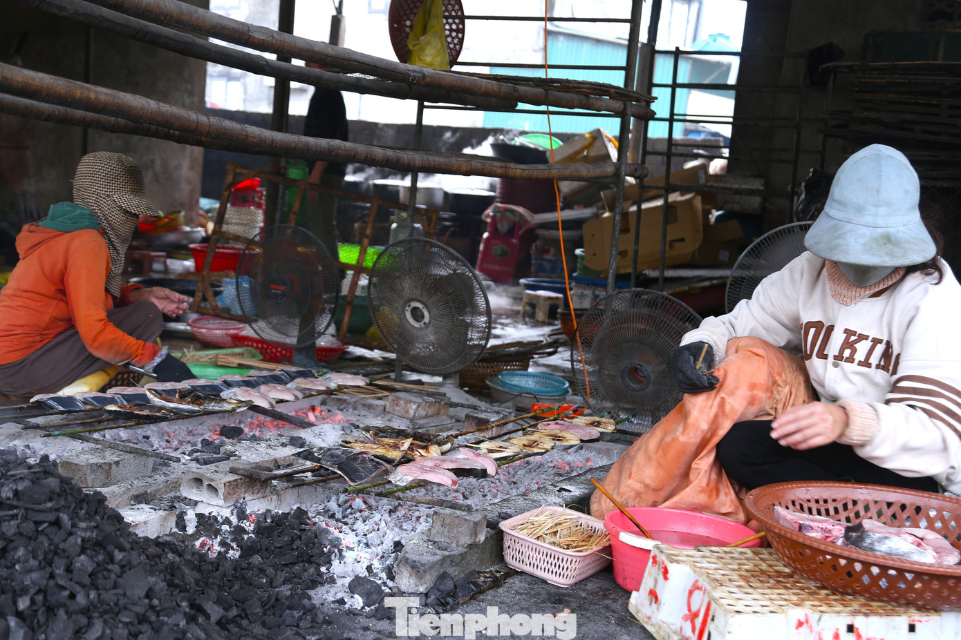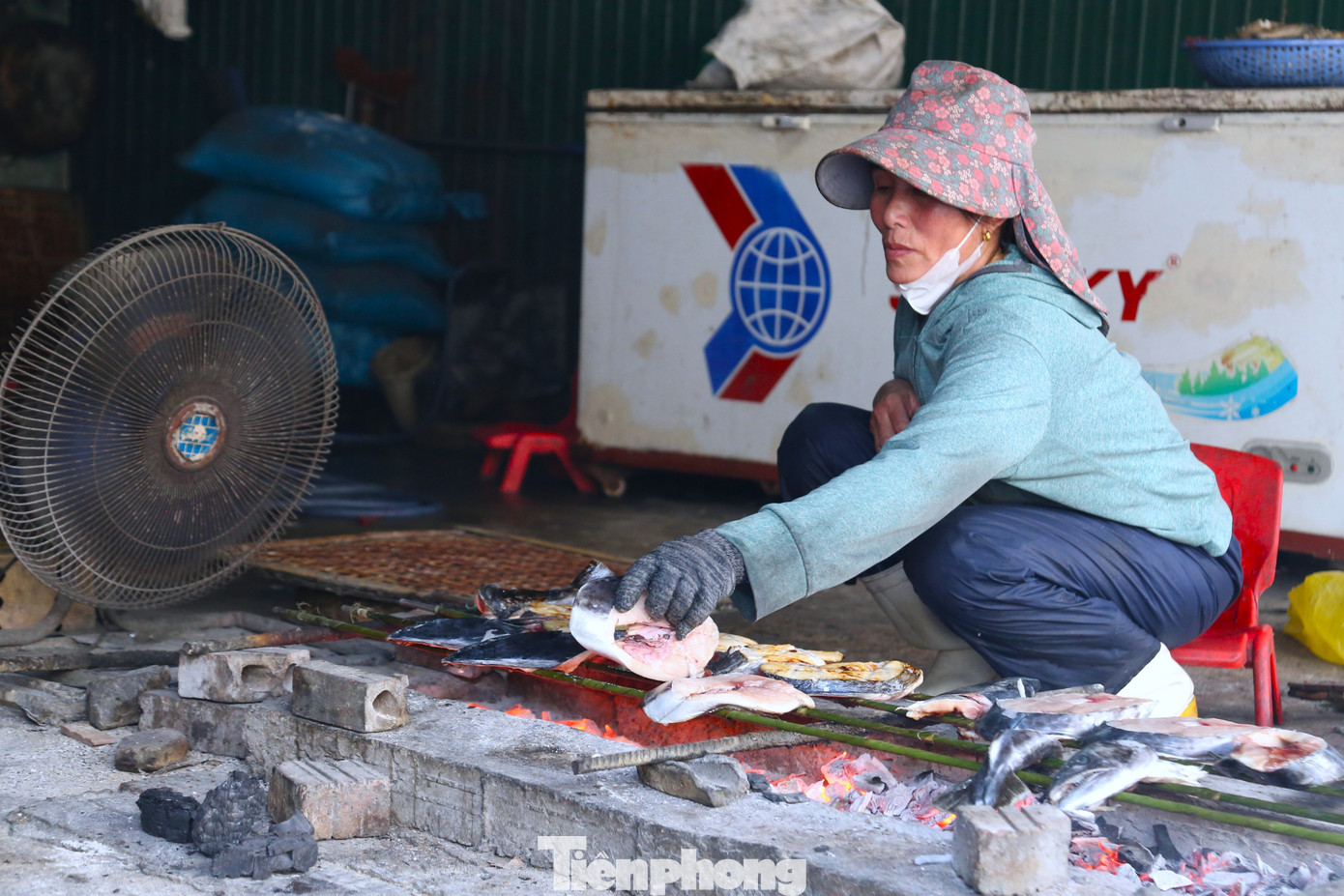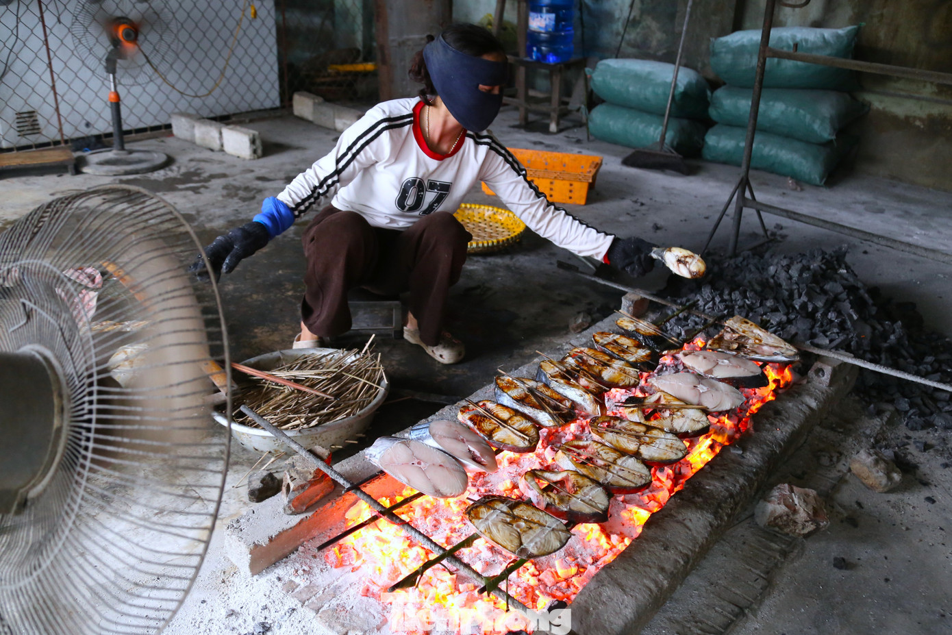 Ông Hoàng Văn Bình (56 tuổi, trú khối Bình Minh) cho biết dịp này ông thường dậy từ rạng sáng, túc trực tại bến cá Nghi Thủy để mua cá biển về nướng, bán kiếm lời. Cá được đưa lên thớt hoặc dùng máy cắt khúc trước khi nướng. Ngày thường chỉ sơ chế khoảng 100 kg cá, nhưng cận Tết tăng lên 500 kg mỗi ngày. Dịp này, cơ sở của ông phải thuê thêm 3-4 lao động thời vụ để nướng cá.