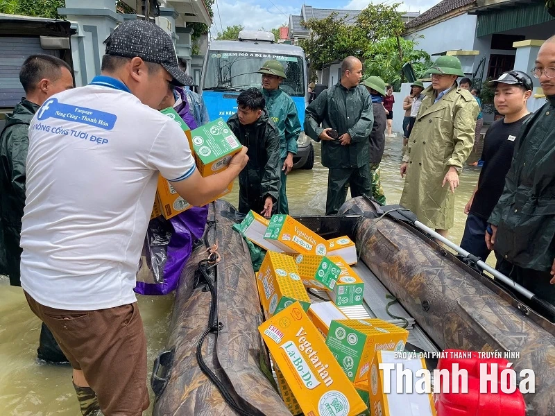 Đến trưa ngày 1/10, nhiều thôn của xã Nông Cống vẫn ngập, không điện, không nước sạch, người dân vẫn rất cần các nhu yếu phẩm như đồ ăn, áo phao, vật tư y tế...