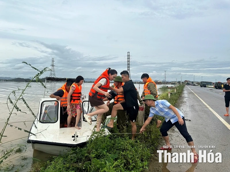 Các lực lượng sử dụng xuồng cứu hộ để tiếp cận từng nhà bị ngập sâu, bảo đảm không bỏ sót bất kỳ ai ở lại vùng nguy hiểm.