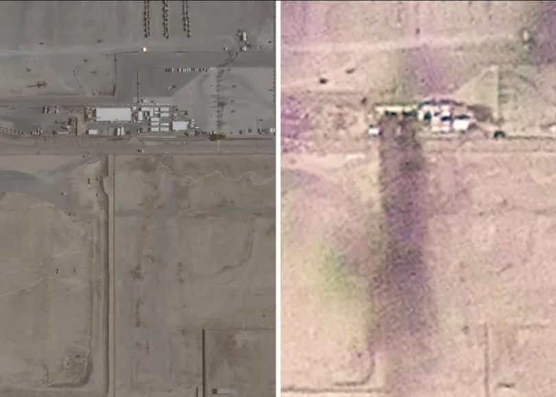 Hai bức ảnh này cho thấy địa điểm các binh sĩ Mỹ thiệt mạng ở Kuwait. Ảnh bên trái được chụp vào ngày 26/6/2025. Ảnh bên phải được chụp vào ngày 1/3. Ảnh: PBC.