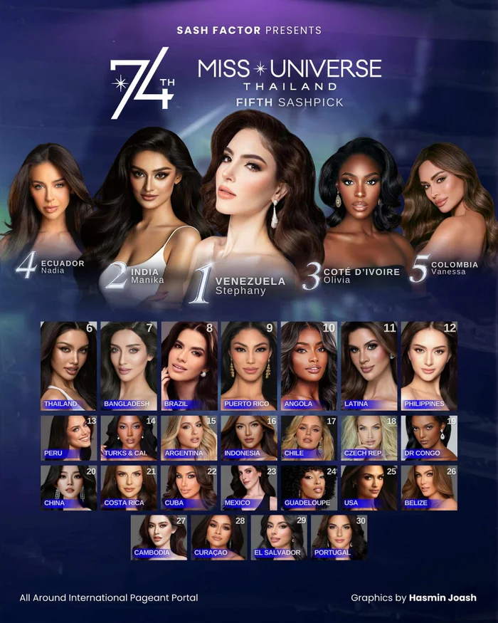 Chỉ ít ngày trước khi diễn ra chung kết, chuyên trang sắc đẹp uy tín là Sash Factor đã tung bảng dự đoán Top 30 Miss Universe 2025. Song, trong bảng dự đoán này không có sự xuất hiện của Hương Giang. Và đúng như dự đoán của Sash Factor, Hương Giang đã không được gọi tên vào top 30.