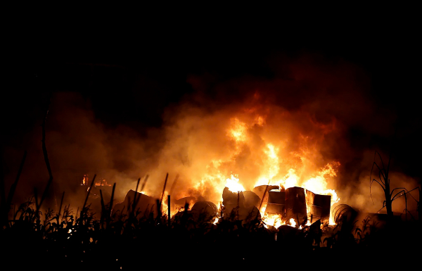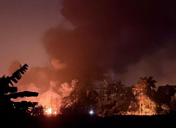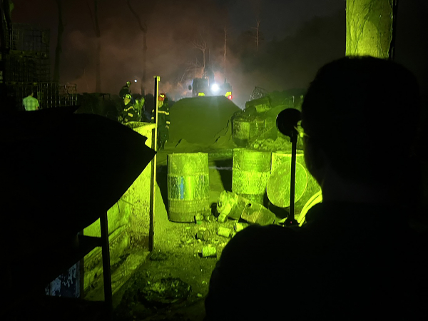 Lực lượng chức năng nhận định đám cháy xuất phát từ bãi đất chứa dầu thải; do có nhiều vật liệu dễ bắt lửa, đặc biệt là dầu thải đã qua sử dụng, nên phát sinh nhiều khói, khí độc.