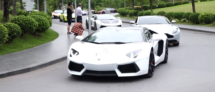 Dàn siêu xe trị giá lên đến hàng chục tỷ của doanh nhân Cường Đô La trong đám cưới với người mẫu Đàm Thu Trang. (Ảnh: chụp màn hình)
