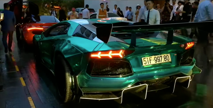 Siêu xe Lamborghini Aventador trị giá 60 tỷ đồng xuất hiện trong đám cưới của doanh nhân Cường Đô La và người mẫu Đàm Thu Trang. (Ảnh: chụp màn hình)
