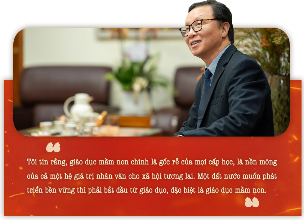 Tôi tin rằng, giáo dục mầm non chính là gốc rễ của mọi cấp học, là nền móng của cả một hệ giá trị nhân văn cho xã hội tương lai. Một đất nước muốn phát triển bền vững thì phải bắt đầu từ giáo dục, đặc biệt là giáo dục mầm non.