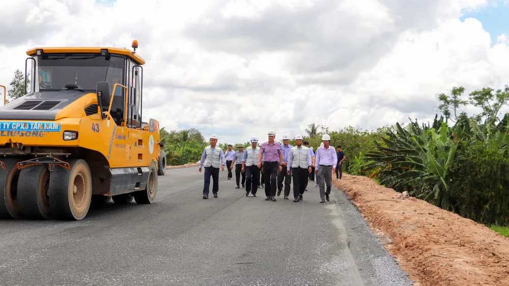 Thứ trưởng Bộ Xây dựng Phạm Minh Hà kiểm tra tiến độ dự án cao tốc Cần Thơ - Cà Mau.