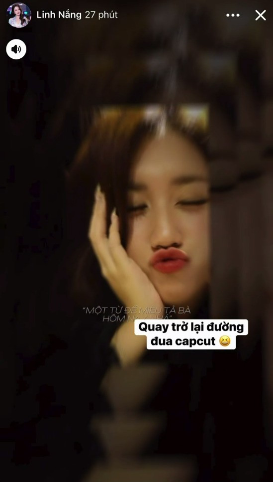 Trước khi "xả kho" ảnh chính thức, MC Linh Nắng đã khiến người hâm mộ tò mò với hai bức ảnh trên Story cá nhân, kèm theo dòng chú thích hài hước: "Quay trở lại đường đua Capcut".