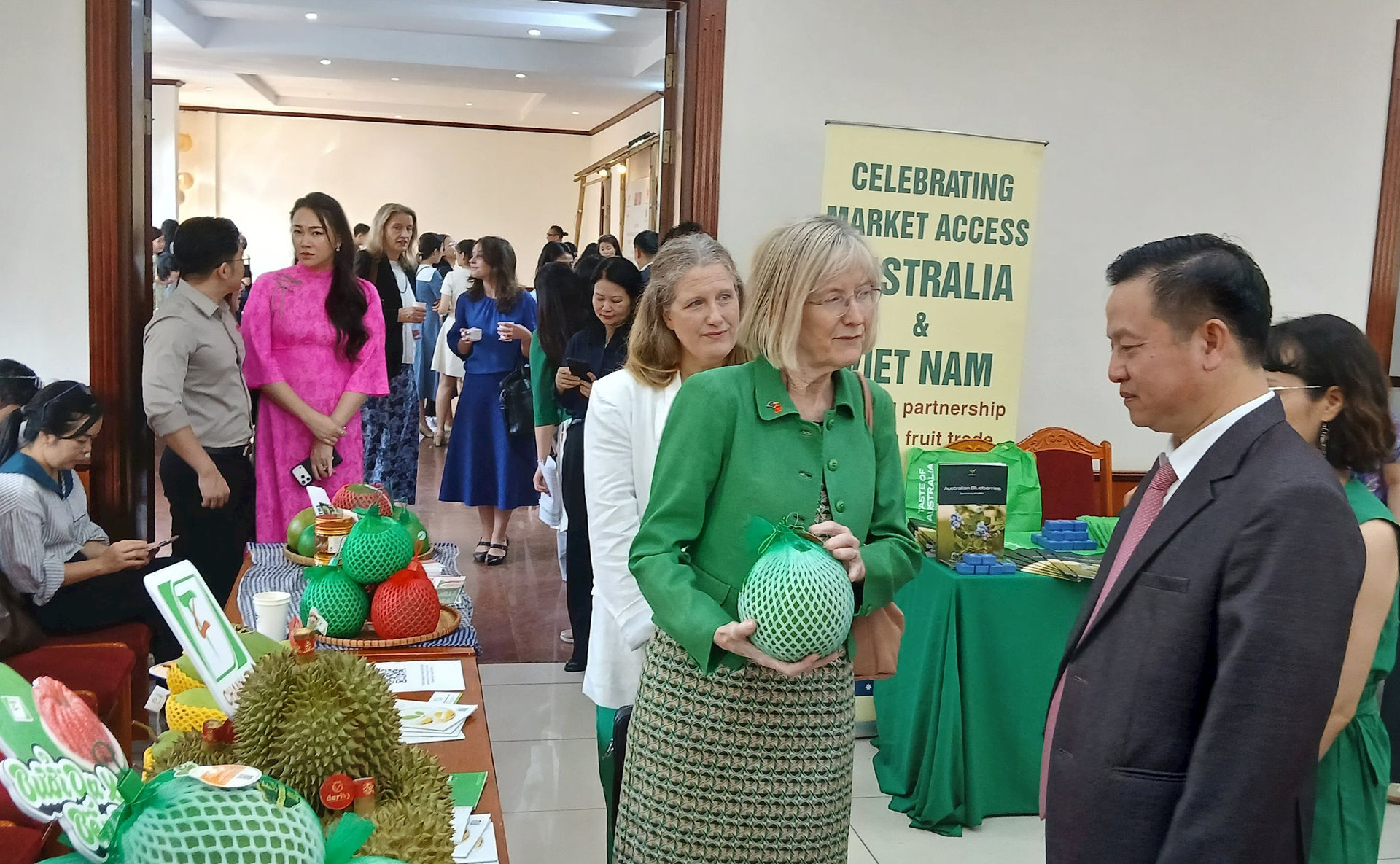 Ông Huỳnh Tấn Đạt - Cục trưởng Cục Trồng trọt và Bảo vệ thực vật tại một chương trình giới thiệu nông sản Việt, trong đó có sầu riêng, đến đối tác quốc tế. Ảnh: N.Lộc