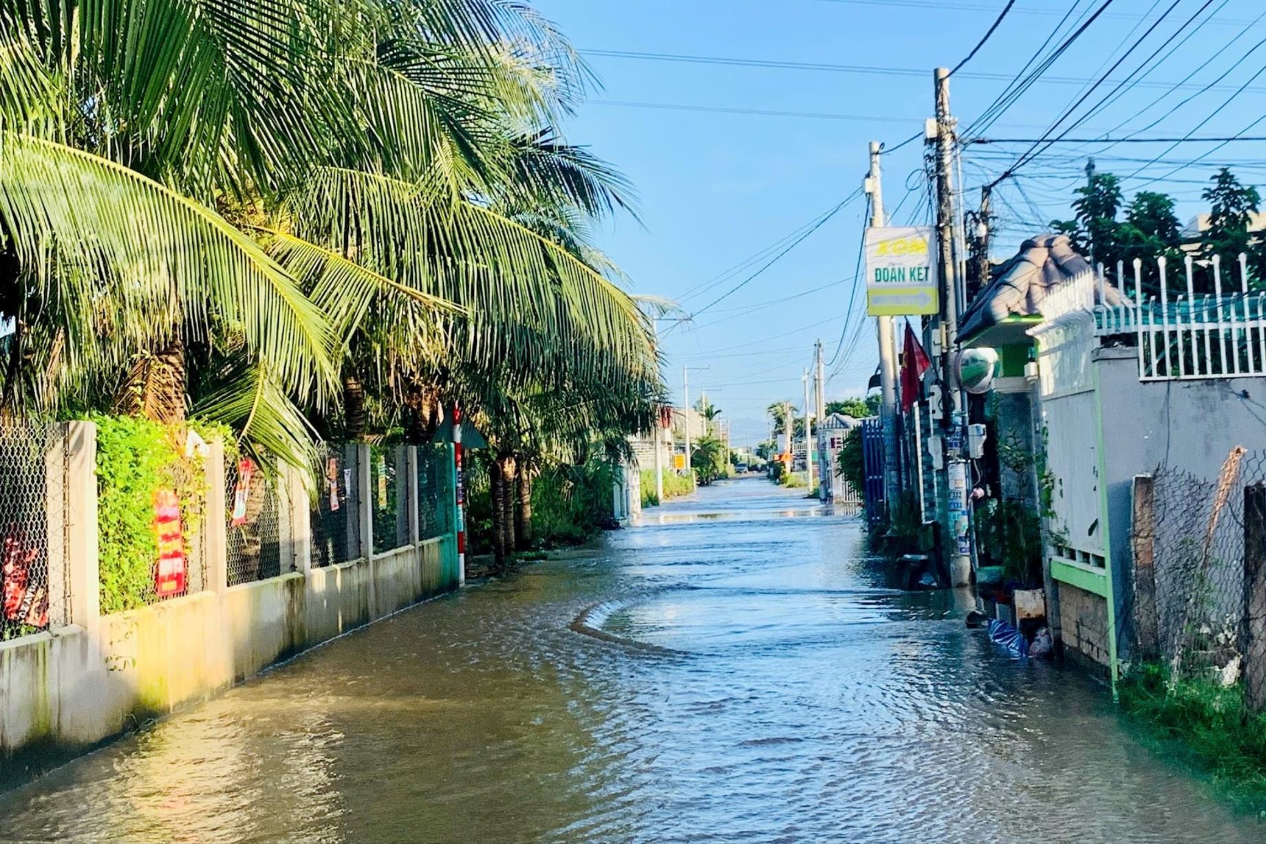 Một điểm ngập tại xã Tân Lập do nước đầu nguồn chảy về nhiều, gây khó khăn đi lại của các hộ dân sinh sống tại đây