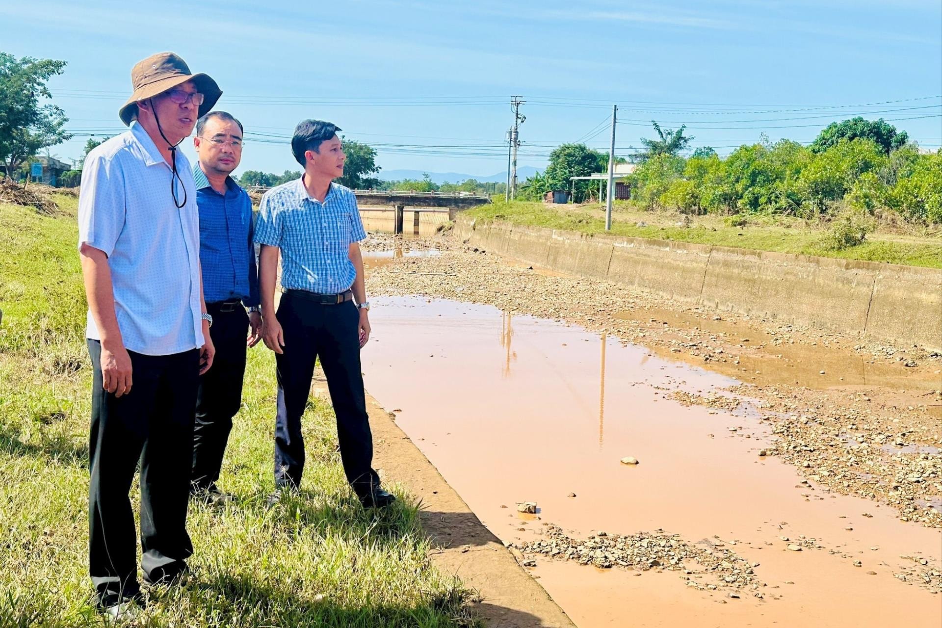 Đoàn đến kiểm tra thực tế tại các điểm ngập sau khi nước rút tại xã Hàm Thuận Nam