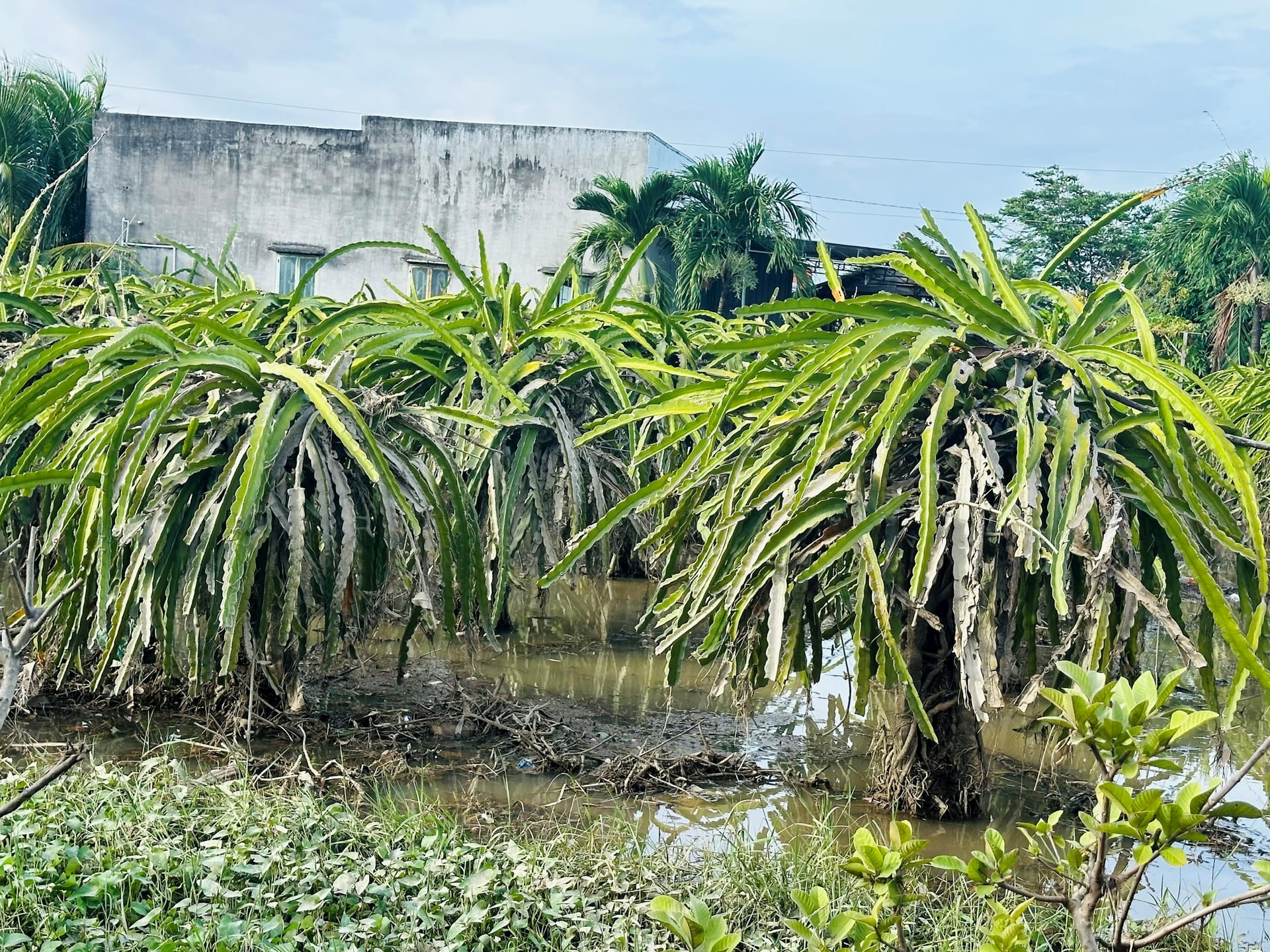 Diện tích thanh long của người dân xã Tân Lập sau khi nước rút