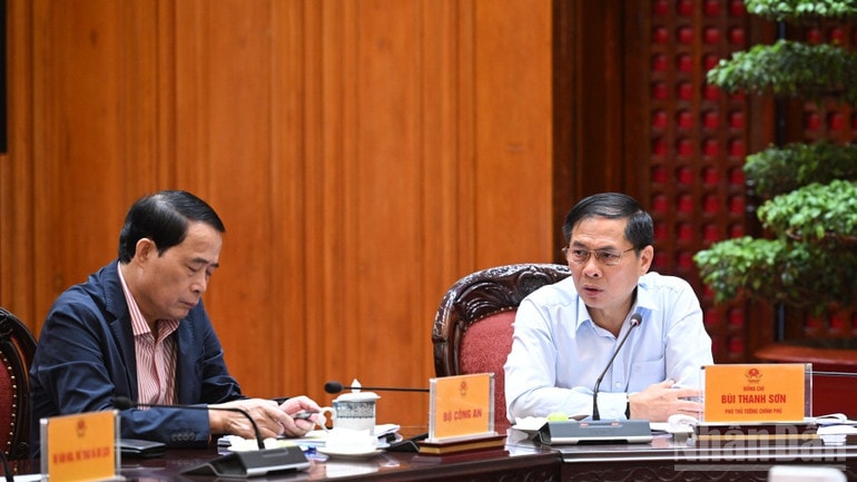 Phó Thủ tướng Bùi Thanh Sơn phát biểu ý kiến tại cuộc làm việc. Ảnh: Trần Hải