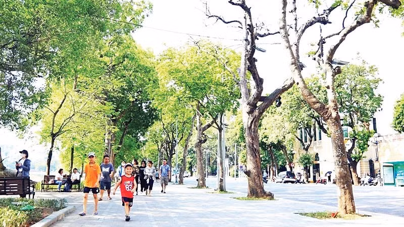 Hà Nội cần đầu tư thêm vỉa hè đủ tiêu chuẩn để người dân đi bộ an toàn, thuận lợi. (Ảnh VIẾT THÀNH)