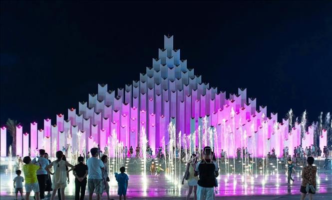 Tháp Tam Thắng gồm hơn 143 trụ tháp, cao từ hơn 3m đến hơn 30m, kết hợp hài hòa với đài phun nước và hệ thống chiếu sáng nghệ thuật lung linh vào ban đêm. Ảnh: Huỳnh Sơn/TTXVN