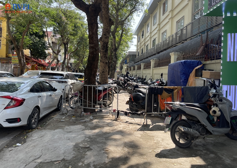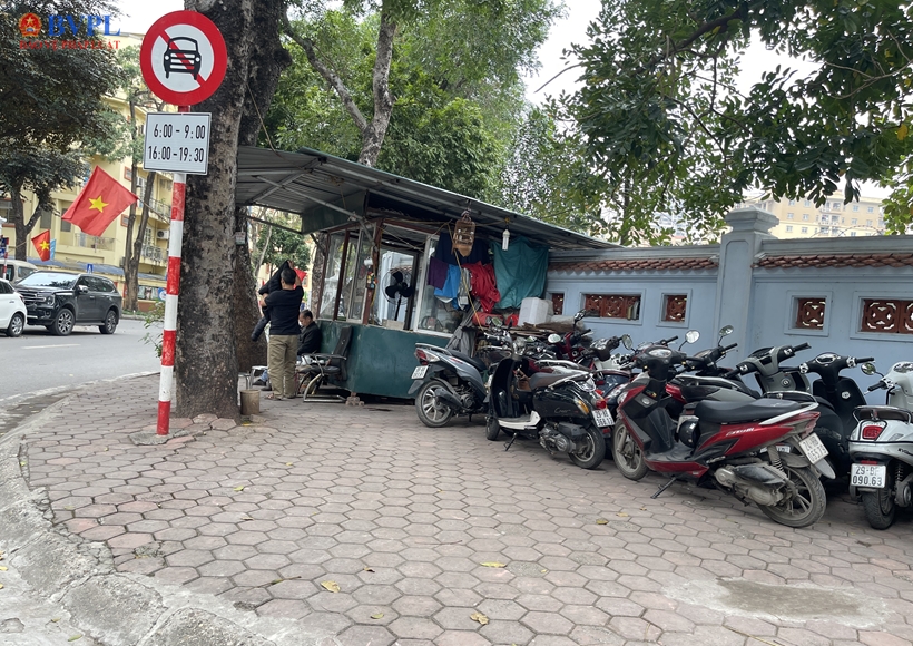 Bốt trông giữ xe lấn chiếm hết vỉa hè trên phố Trần Văn Cẩn (Khu đô thị Mỹ Đình 2).