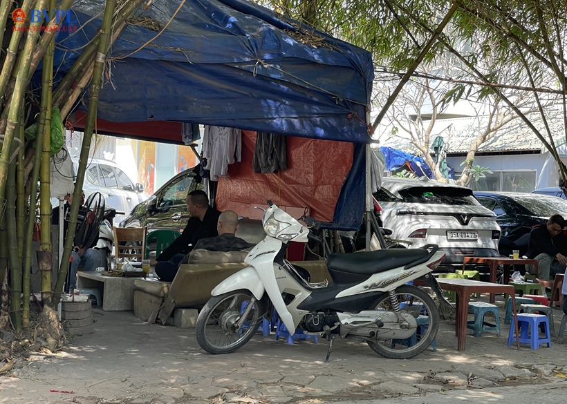 Không hiếm gặp hình ảnh các bãi trông giữ xe dựng lều lán, căng bạt chiếm không gian công cộng trong thời gian dài mà không bị xử lý dứt điểm.