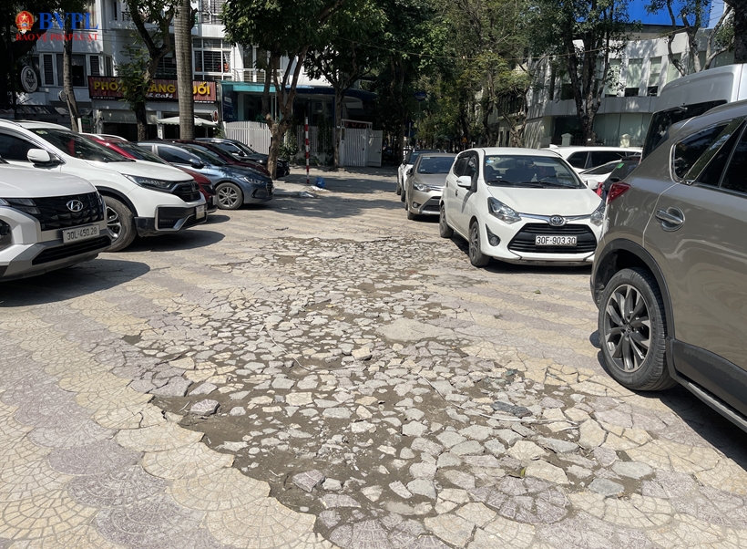 Gạch lát tại sân công cộng biến thành bãi trông giữ xe bị ô tô cày nát, gây lãng phí.