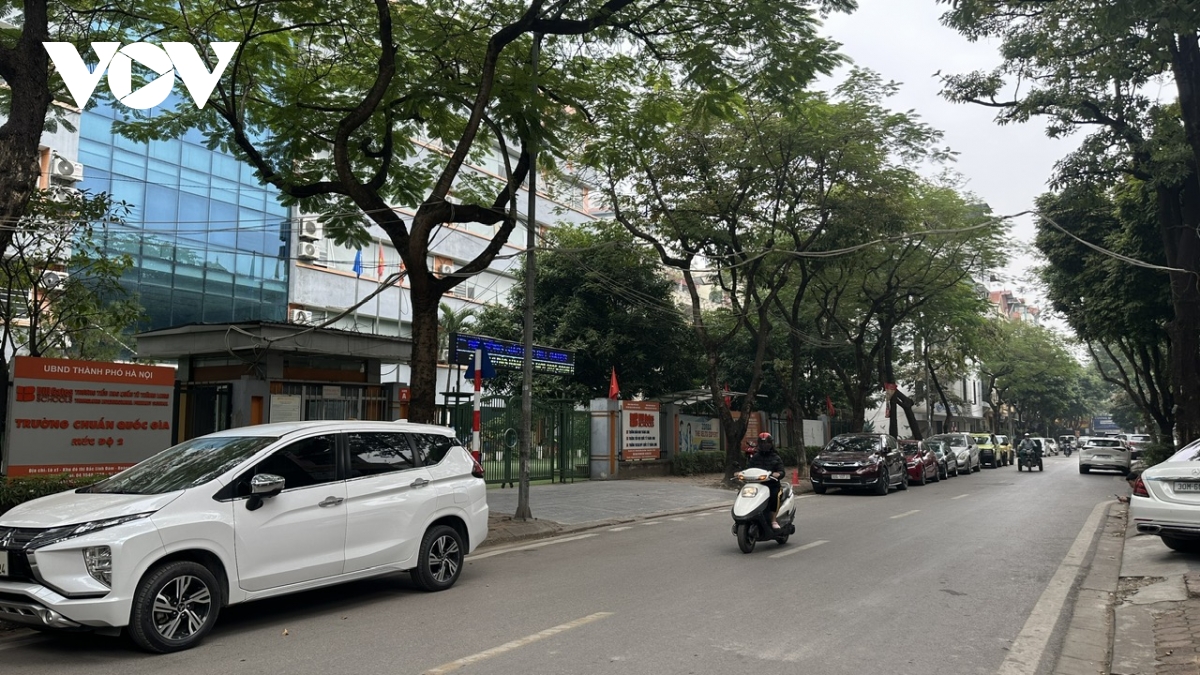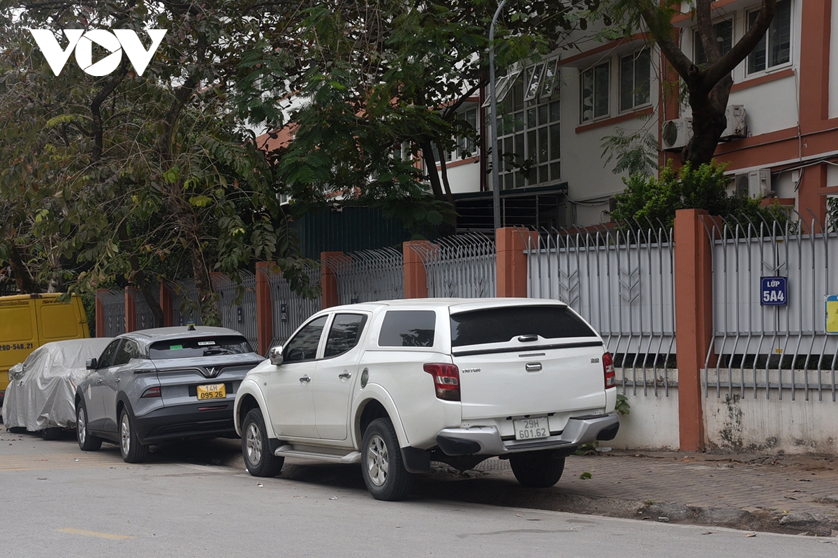 Một trường học trong KĐT Bắc Linh Đàm bị ô tô quây kín.