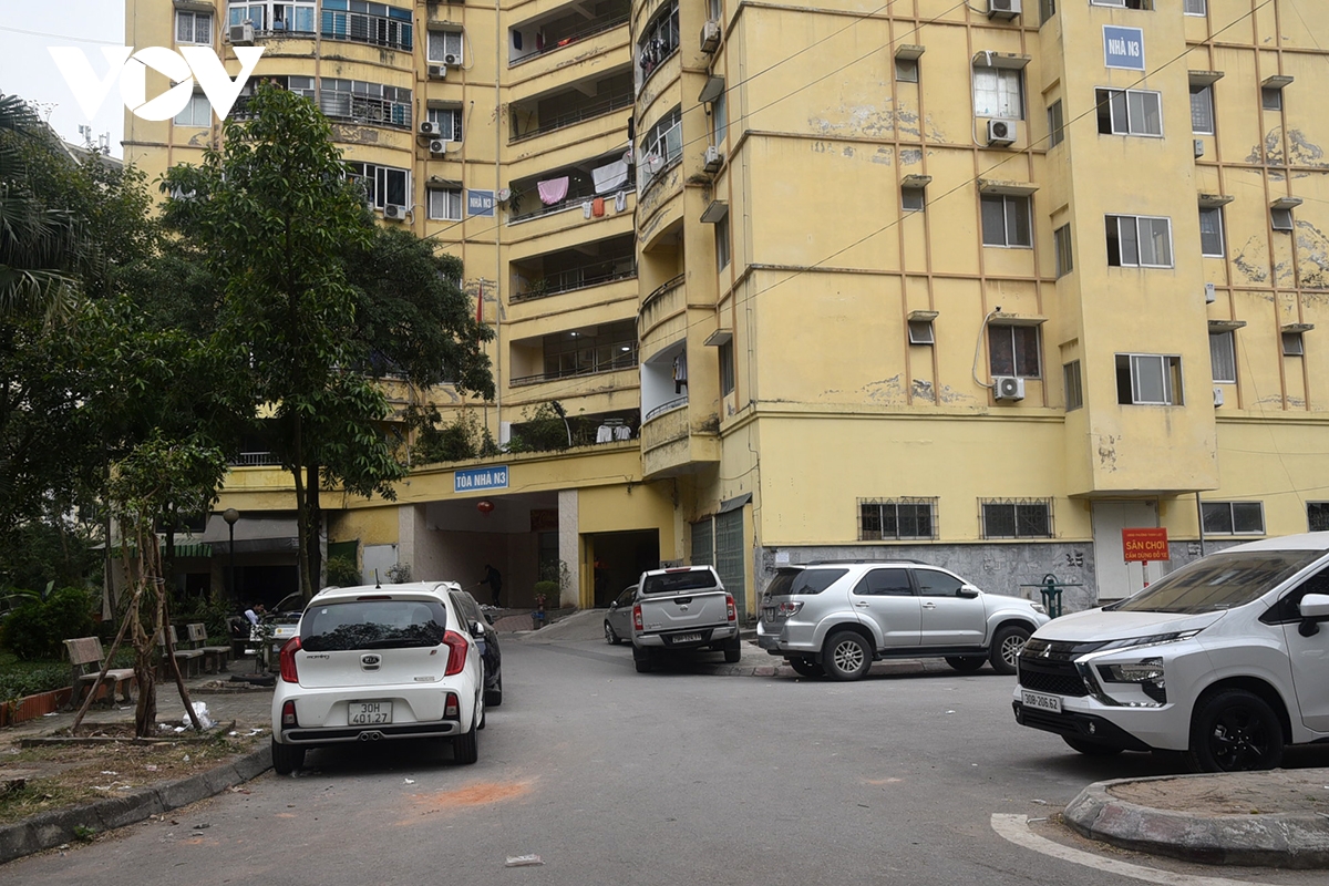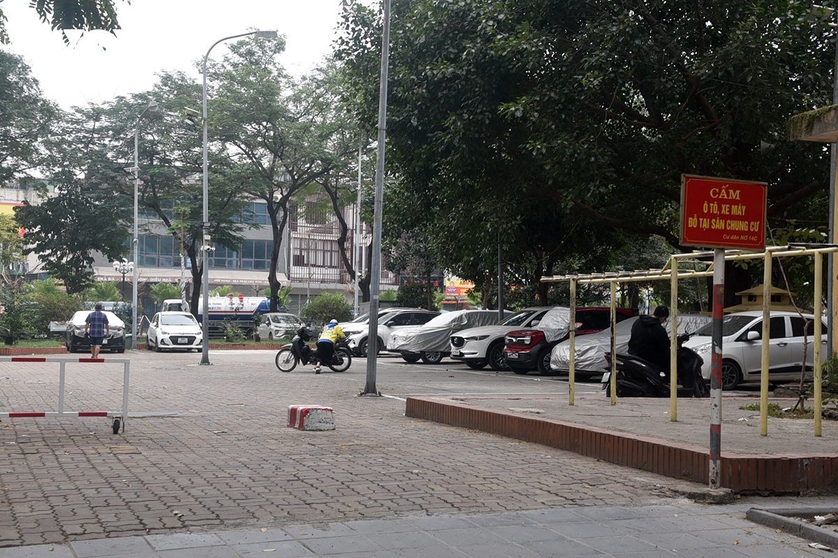 Tương tự tại KĐT Định Công các sân chơi, vườn hoa công công cộng dưới chân các tòa nhà Nơ 14C, 14A, 14B bị biến thành nơi dừng, đỗ xe ô tô, người dân phải chia sẻ không gian tập thể dục, vui chơi với phương tiện giao thông.