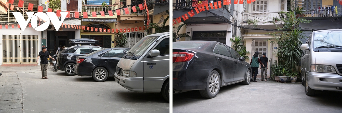 Cảnh lộn xộn tại một sân khu tập thể trên phố Đại La bị chiếm dụng làm bãi đỗ xe, ảnh hưởng nghiêm trọng đến sinh hoạt của cư dân.