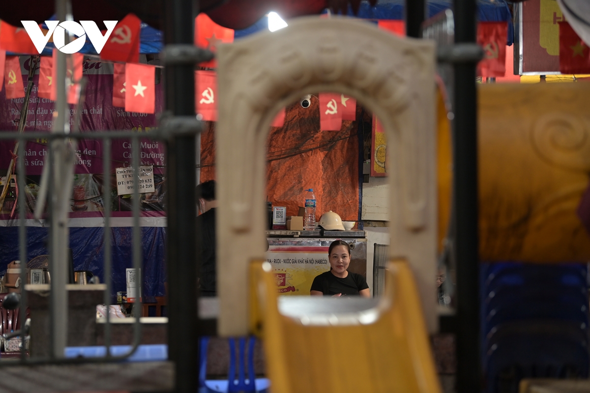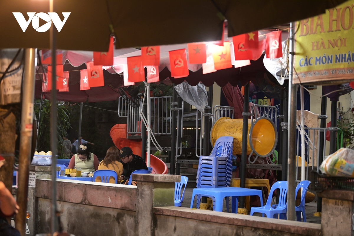 Một góc sân chơi cũ tại khu tập thể Kim Liên bị chiếm dụng làm quán ăn, khiến trẻ em không còn chỗ vui đùa như trước.