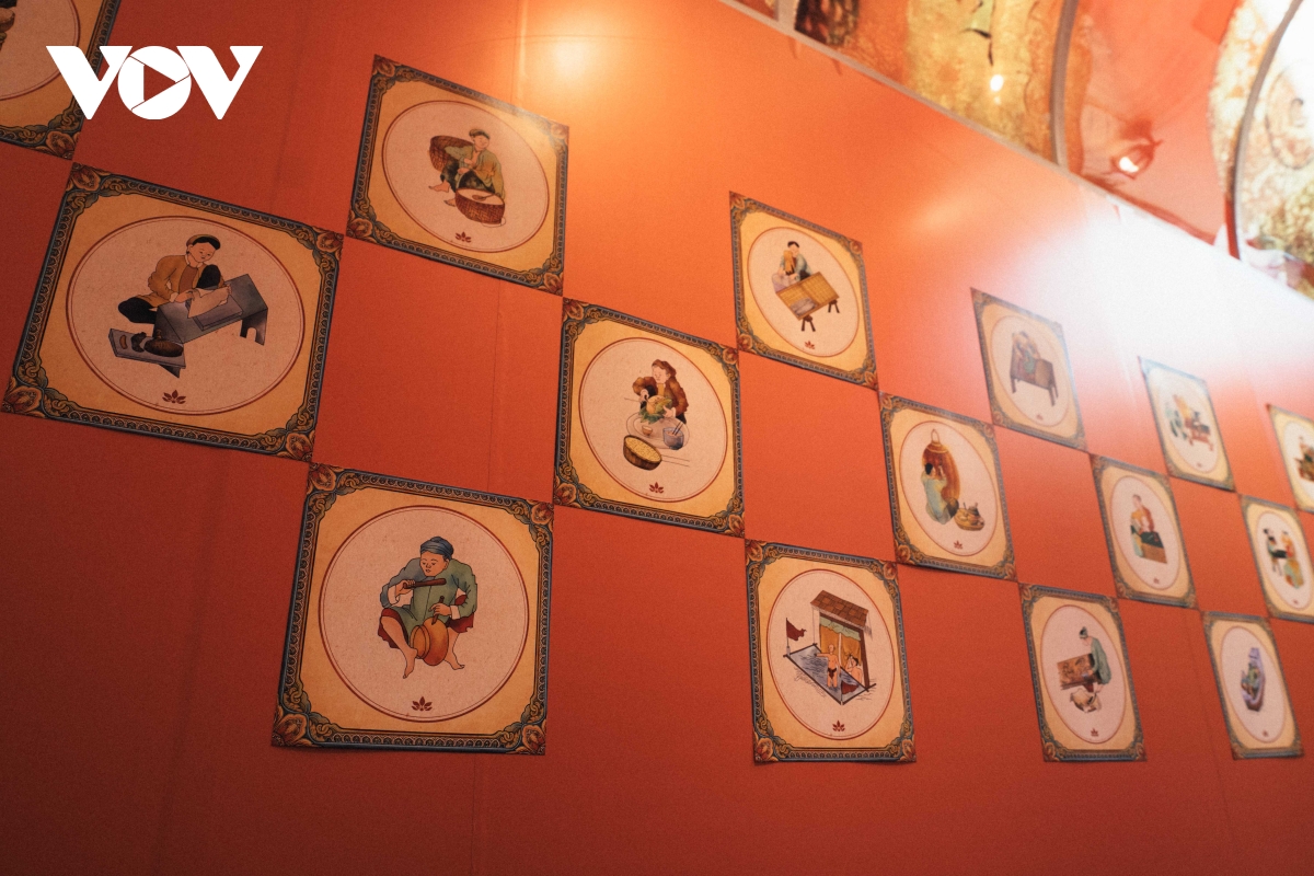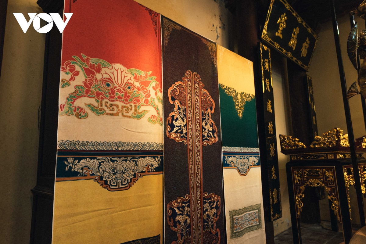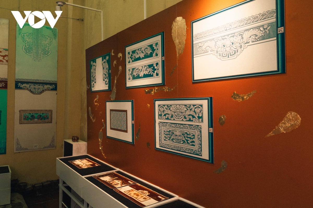 Khu trưng bày hệ thống hoa văn đặc hữu của Đình Kim Ngân sau khi được nghiên cứu – phân loại.