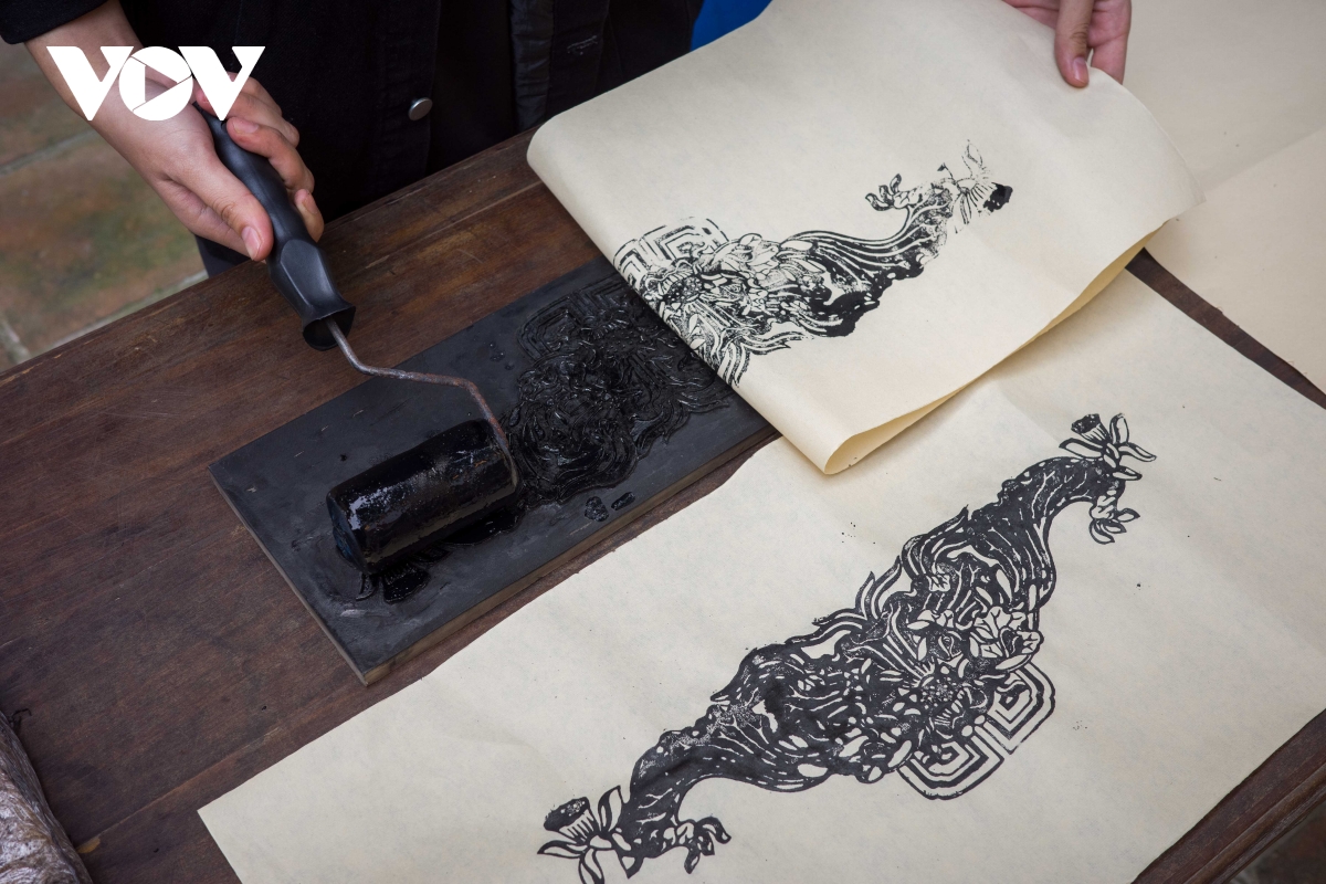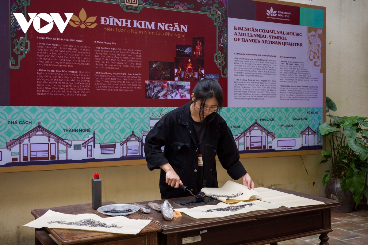 Du khách còn được trải nghiệm nghề khắc và in mộc bản Thanh Liễu tại đình Kim Ngân. Từng thao tác khắc chữ và in trên mộc bản được thực hiện tỉ mỉ, tái hiện kỹ thuật truyền thống.