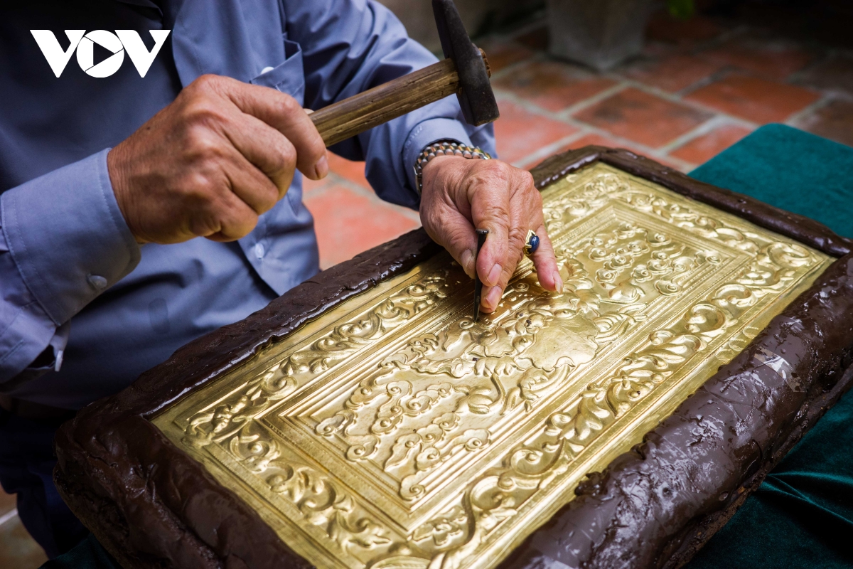 Kỹ thuật thúc– một trong những công đoạn tinh xảo nhất của nghề kim hoàn truyền thống. Từng nhát búa nhẹ nhàng nhưng chính xác tạo nên các hoa văn nổi trên bề mặt, thể hiện sự khéo léo và tâm huyết của người thợ. Hoạt động này không chỉ tái hiện kỹ thuật xưa mà còn giúp du khách trải nghiệm trực tiếp hành trình “rèn nghề thành nghệ” tại không gian đình Kim Ngân.