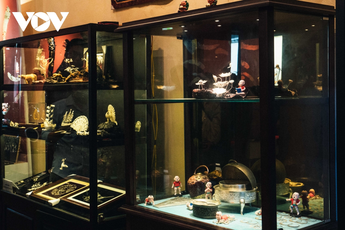 Tác phẩm trưng bày tại không gian “Nghệ” của đình Kim Ngân, kết hợp kỹ thuật cổ truyền và dấu ấn cá nhân của nghệ nhân. Mỗi chi tiết được hoàn thiện thủ công, tái hiện vẻ đẹp thẩm mỹ và giá trị tinh thần của nghề kim hoàn xưa.