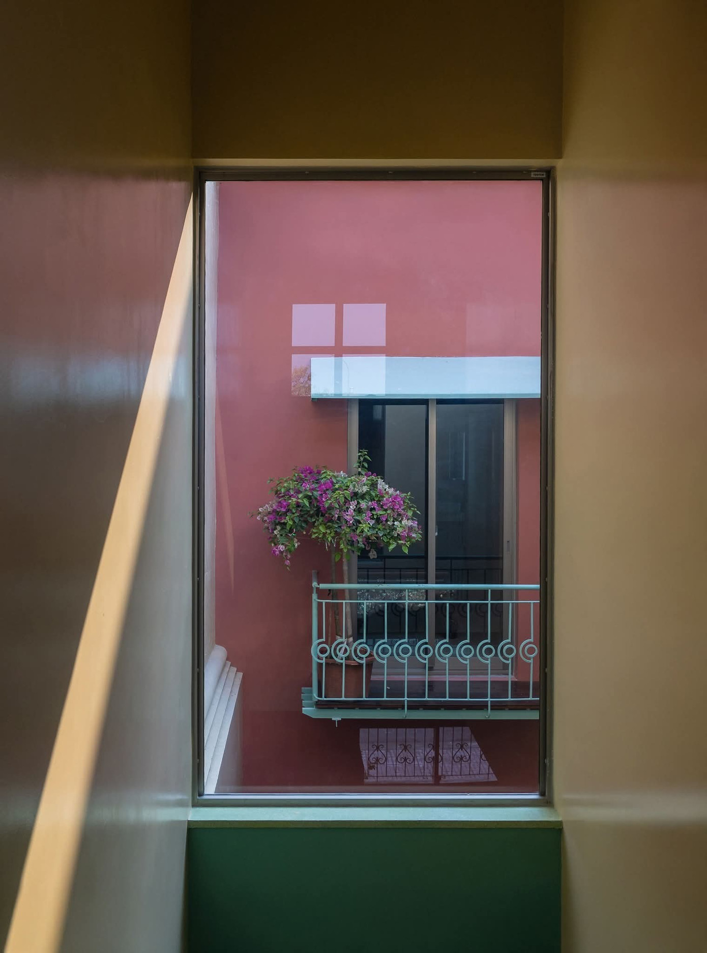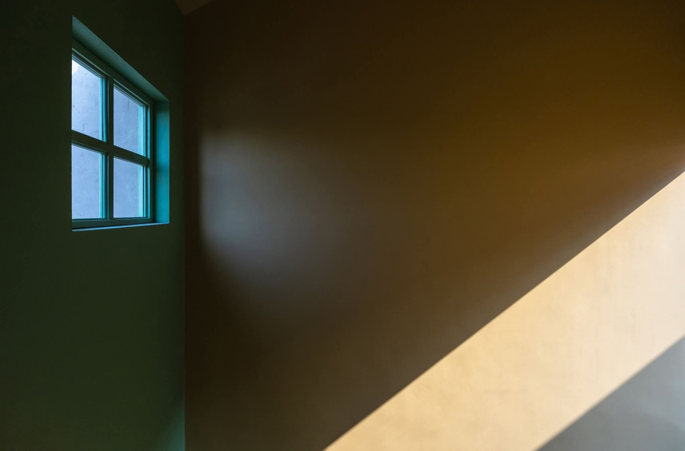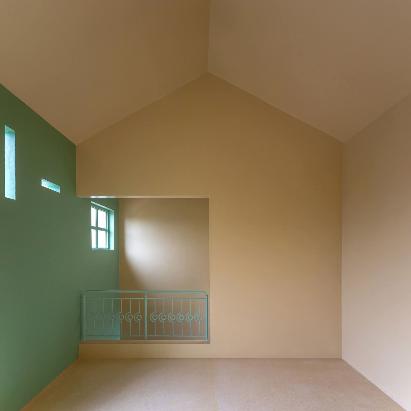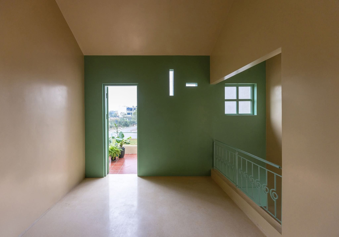 Mỗi phòng đều có cửa sổ đón sáng – nhưng không phải ánh sáng gắt, mà là thứ ánh sáng đi qua lớp tường dày, khúc xạ qua lớp sơn mịn, dịu dàng và đầy chất thơ.
