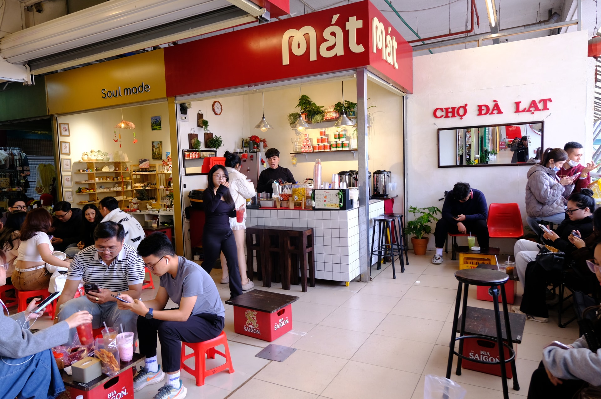Từ tháng 10/2025, khu chợ bắt đầu “thức giấc” khi ngày càng nhiều bạn trẻ Đà Lạt mang theo những ý tưởng sáng tạo tìm đến. Từ không gian trống trải ban đầu, chợ dần khoác lên diện mạo mới - một không gian mua sắm kết hợp trải nghiệm, trẻ trung nhưng vẫn giữ được hồn cốt chợ truyền thống. Hiện nay, trong gần 300 ki-ốt, đã có các cá nhân, tổ chức đăng ký thuê, gần 100 gian hàng hoạt động ổn định với đa dạng sản phẩm từ ẩm thực, đồ uống, cà phê đến đồ thủ công, quà lưu niệm, tinh dầu… mang đậm dấu ấn Đà Lạt. Mỗi gian hàng là một câu chuyện riêng, được kể bằng màu sắc, phong cách trang trí và sự tử tế trong cách phục vụ.