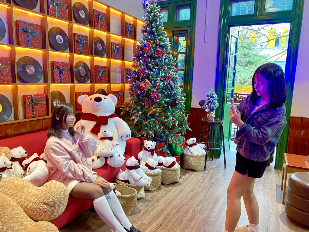 Không gian các quán cà phê thu hút đông đảo bạn trẻ đến check in, chụp ảnh lưu giữ khoảnh khắc mùa Giáng sinh.