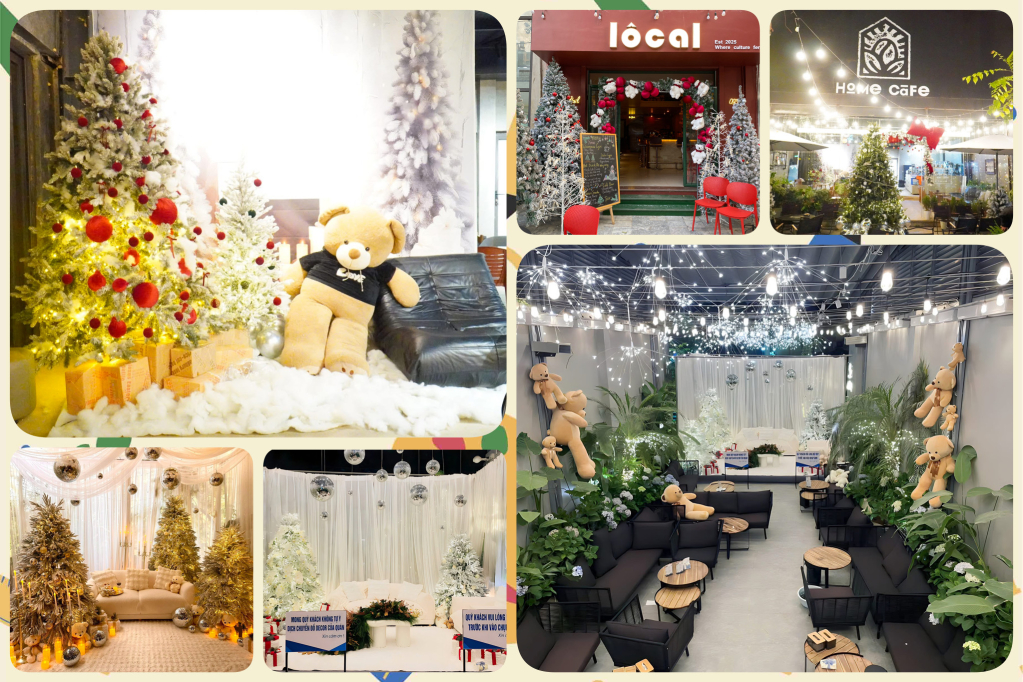 Ghi nhận tại một số quán cà phê trên các phường trung tâm tỉnh, ngay từ cuối tháng 11, nhiều chủ quán đầu tư trang trí Noel khá công phu. Những cây thông cao từ 2 - 3 m được đặt ở vị trí trung tâm, trang trí bằng quả châu, hộp quà, đèn led nhiều màu sắc. Không ít quán còn thiết kế riêng các tiểu cảnh như góc lò sưởi, bàn quà Noel hay phông nền tuyết trắng để khách hàng dễ dàng “check in”. Nhờ vậy, lượng khách, đặc biệt là các bạn trẻ tăng lên rõ rệt so với ngày thường.