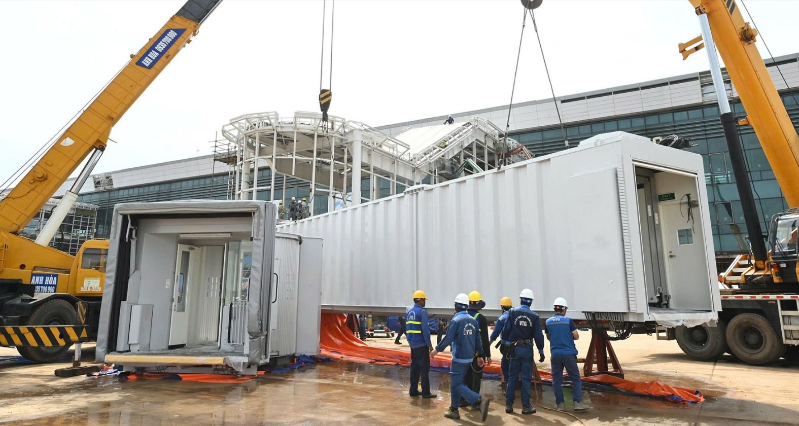 Hoàn thiện lắp đặt ống lồng từ sân đỗ vào nhà ga sân bay Long Thành. Ảnh: XUÂN TRUNG
