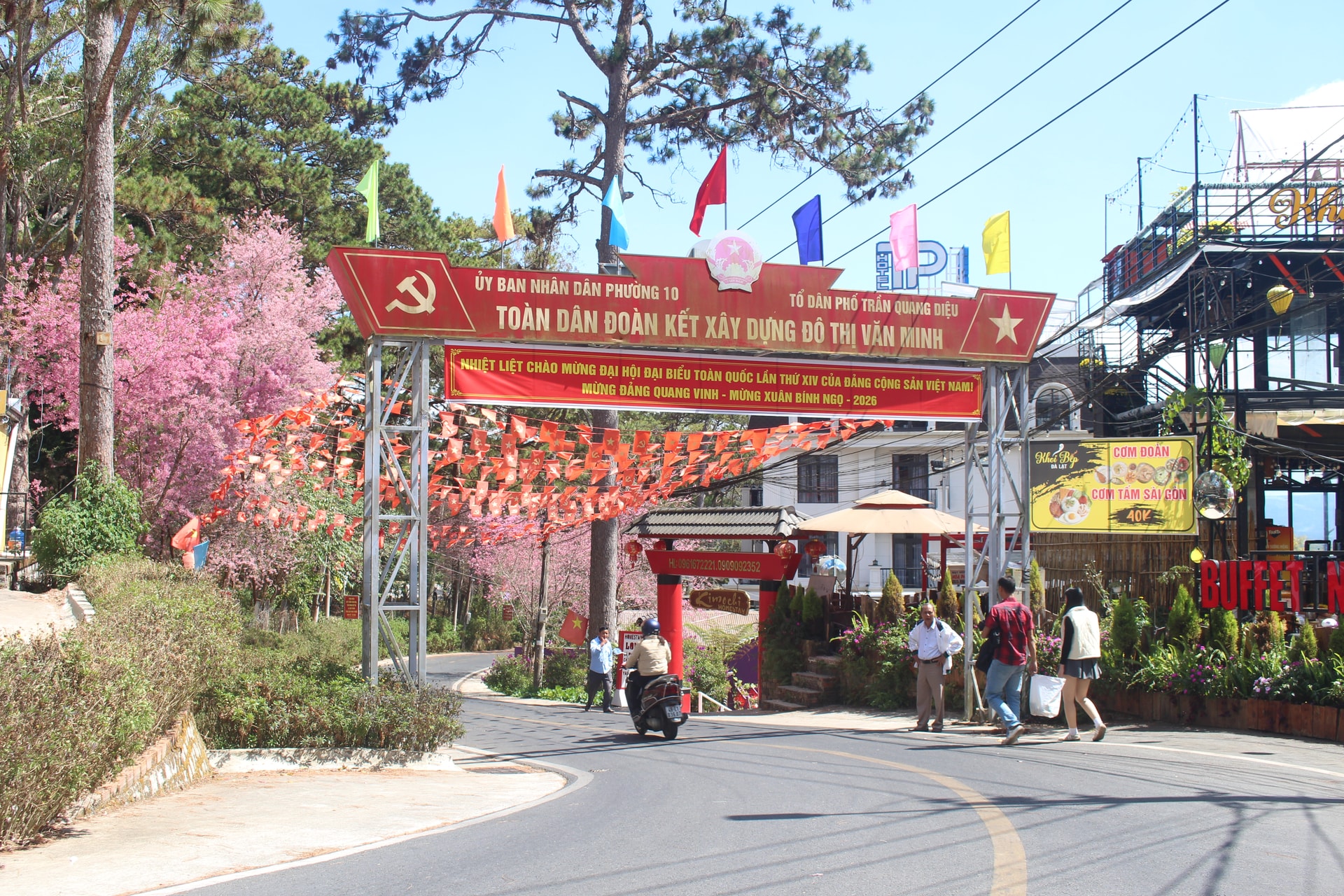 Nằm cách hồ Xuân Hương chỉ 2 km, tổ dân phố Trần Quang Diệu (phường Xuân Hương - Đà Lạt) từng là nơi heo hút, đường vào gập ghềnh đá sỏi, chiều xuống sương mù bao phủ, ít người qua lại. Hơn 10 năm trước, nơi đây vẫn được coi là vùng sâu, hẻo lánh giữa lòng phố, gắn với địa danh “kho lương thực cũ” thời bao cấp. Nay đã khác xưa, đường vào tổ dân phố (TDP) được trải nhựa láng mịn, uốn lượn qua rừng thông xanh mát. Mùa này mai anh đào nhuộm hồng khắp lối, bao phủ những ngôi nhà, giữa một không gian sống hạnh phúc.