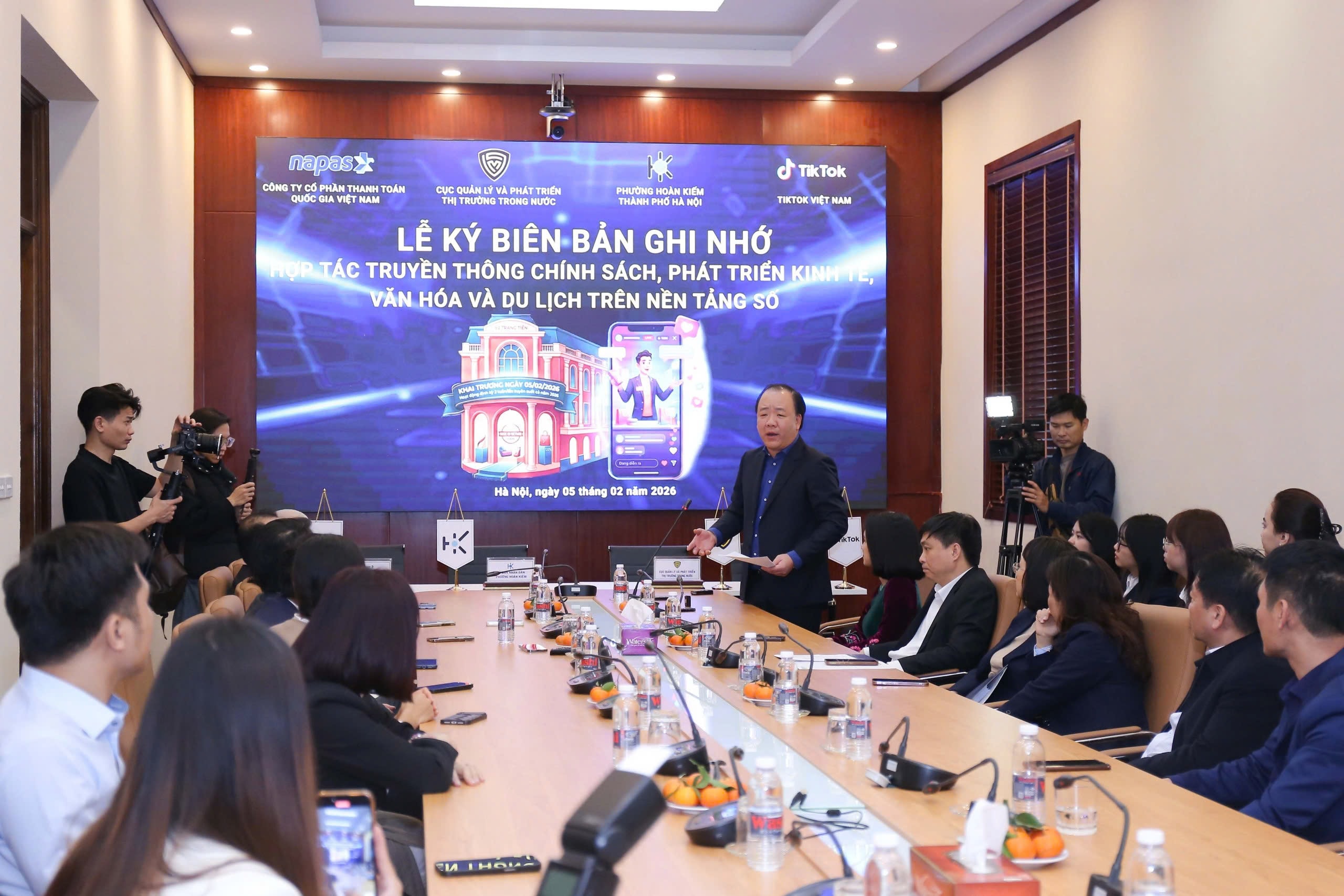 Trong khuôn khổ chương trình khai mạc sáng 5/2, Cục Quản lý và Phát triển thị trường trong nước đã ký kết Biên bản ghi nhớ hợp tác (MOU) với UBND phường Tràng Tiền, Công ty TNHH Công nghệ TikTok Việt Nam và Công ty Cổ phần Thanh toán Quốc gia Việt Nam (NAPAS), nhằm phối hợp truyền thông chính sách, phát triển kinh tế, văn hóa và du lịch trên nền tảng số.