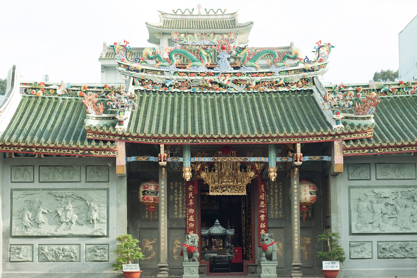 Mặt tiền miếu Quan Đế (còn gọi là chùa Ông, hay hội quán Nghĩa An) trên đường Nguyễn Trãi. Ảnh: Nguyễn Thị Bình An