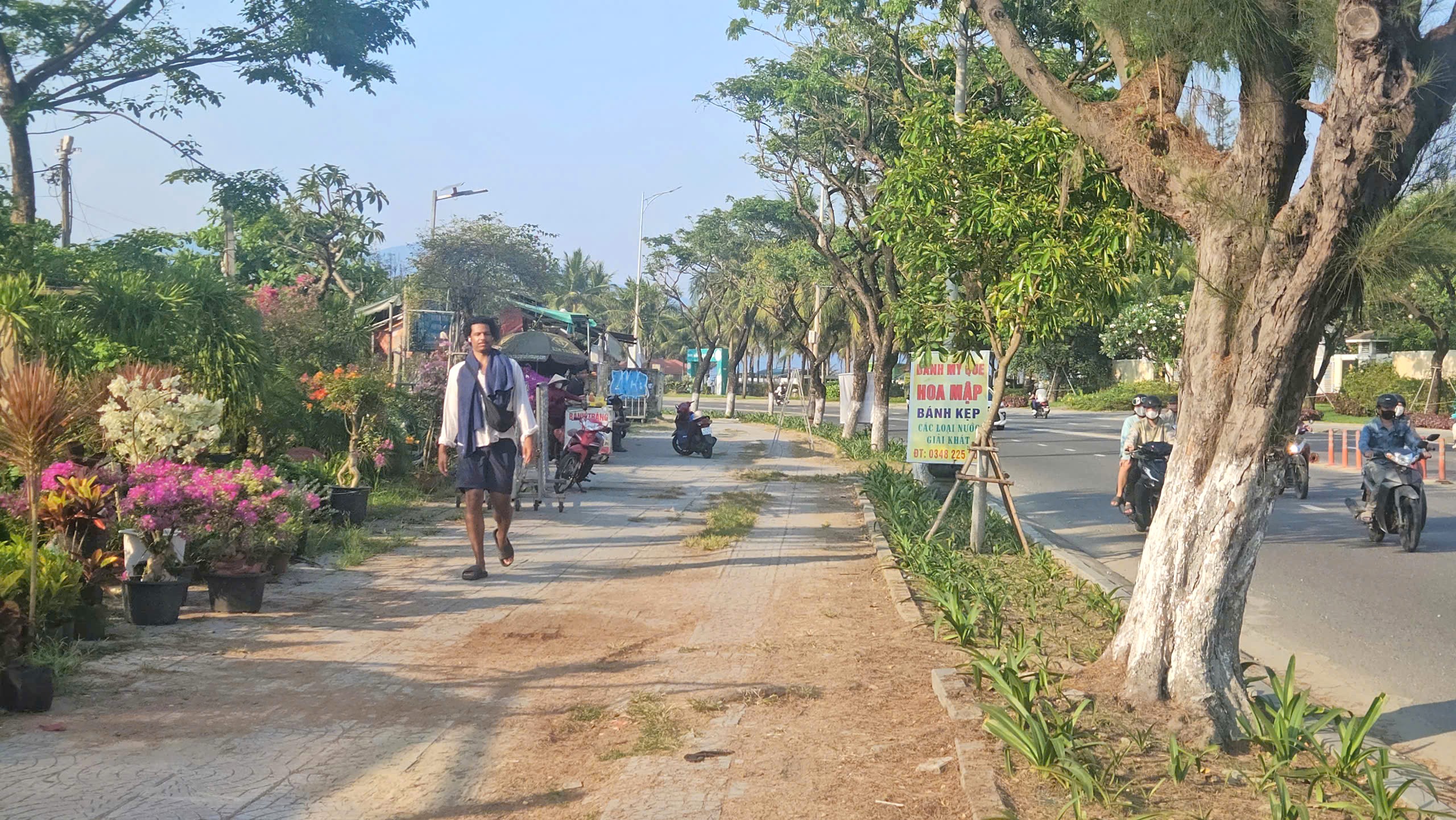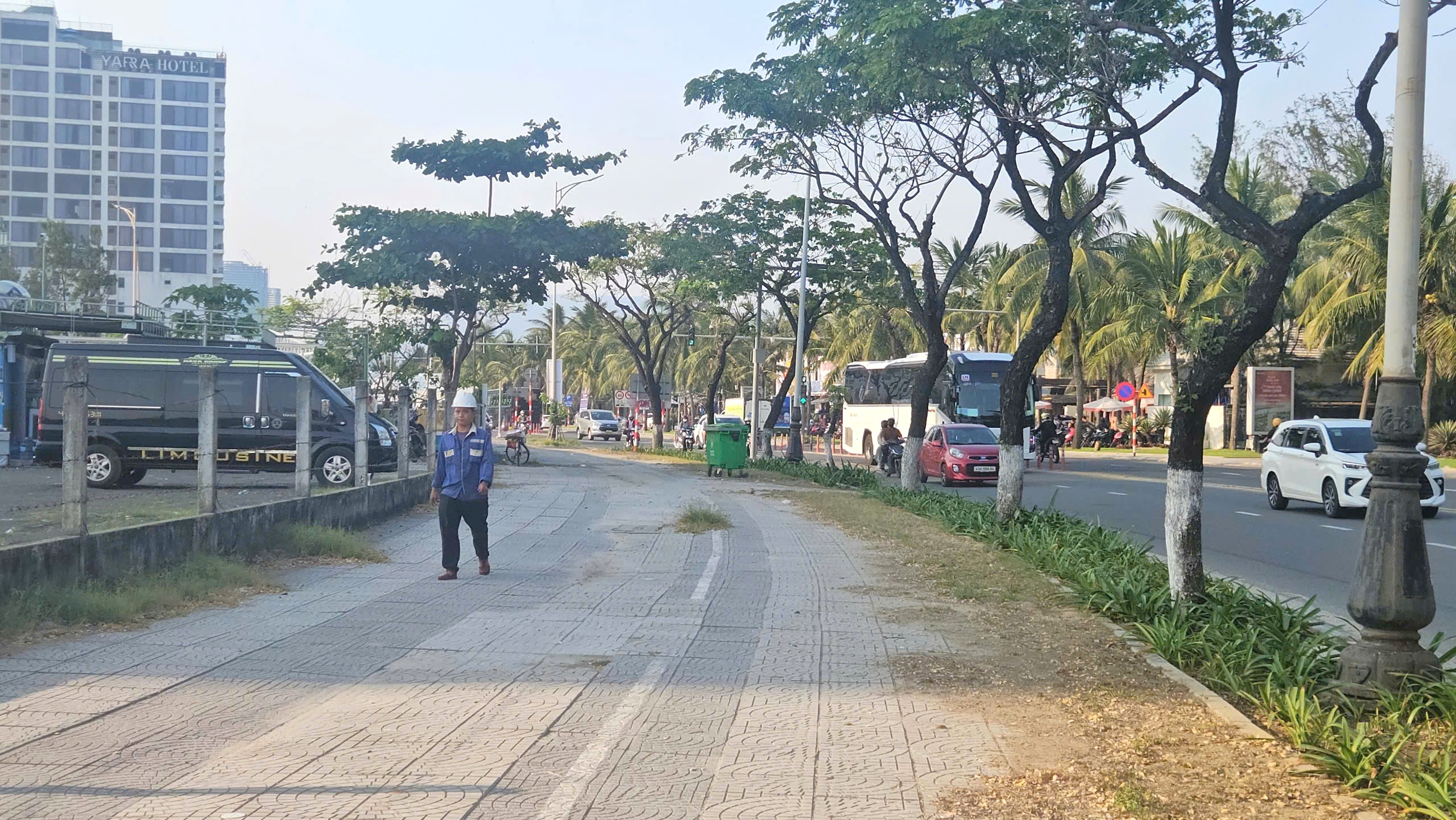 Trên toàn tuyến vỉa hè ven biển từ phường An Hải đến phường Ngũ Hành Sơn, không còn bóng dáng hàng quán bày bán. Theo anh Linh, bảo vệ một khách sạn tại đây, lực lượng quy tắc đô thị xuất hiện thường xuyên những ngày qua để nhắc nhở hàng rong, khiến cho các hàng quán lưu động phải di chuyển hết đi nơi khác, trả lại vỉa hè thoáng đãng. Ảnh: TẤN VIỆT
