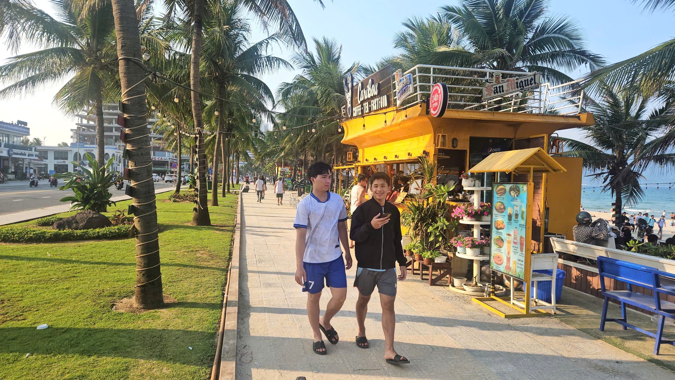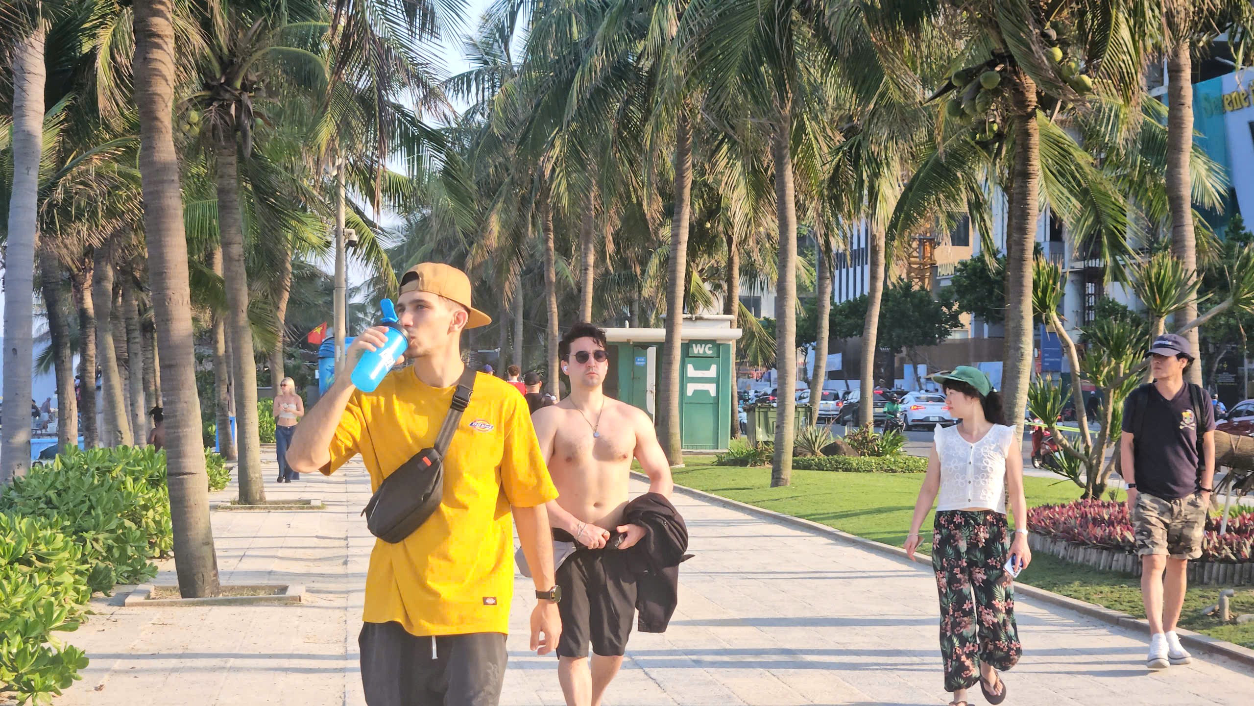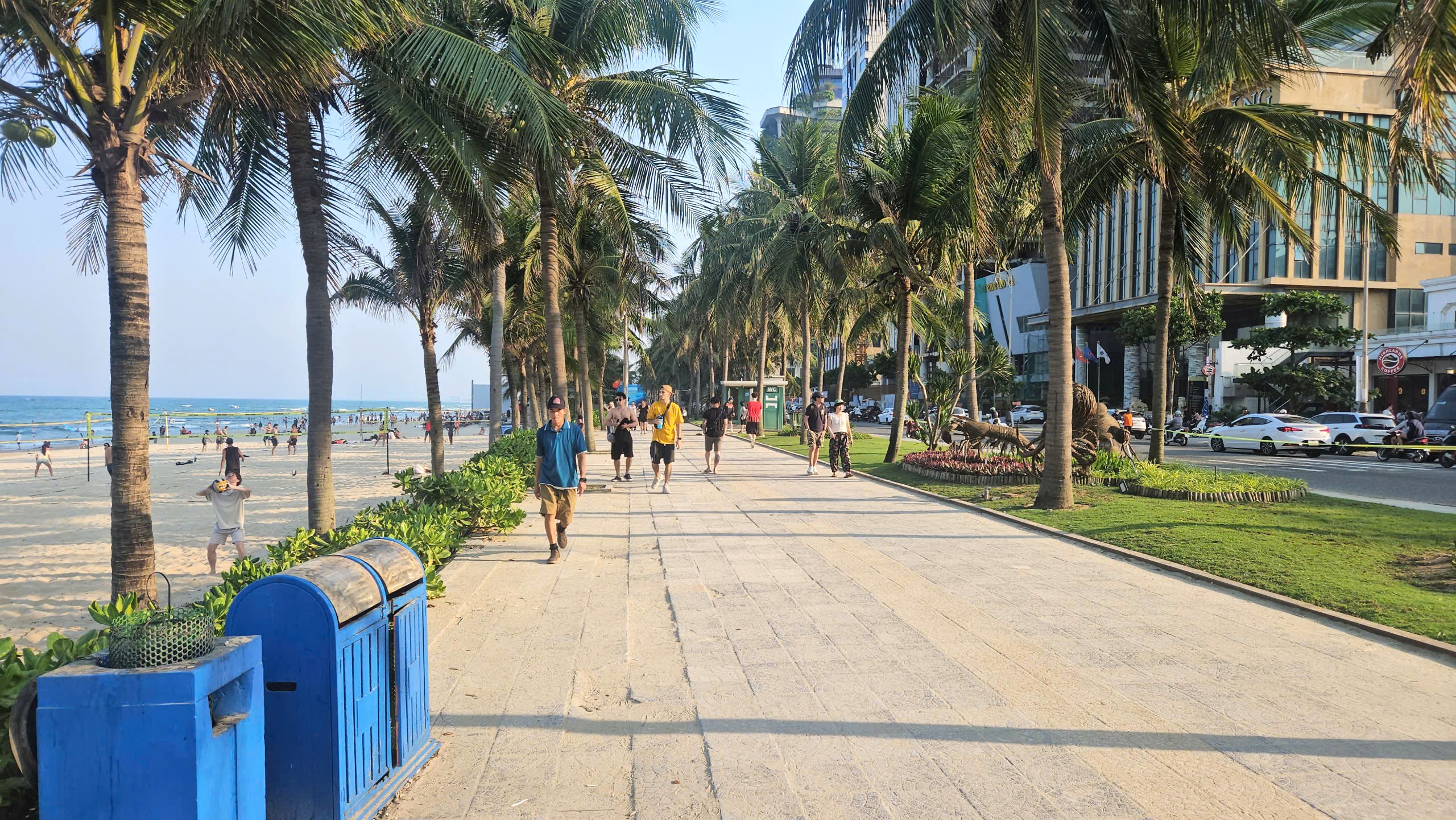 Những ngày cuối tháng 3-2026, du khách nước ngoài đổ về biển Đà Nẵng rất đông. Không gian vỉa hè thông thoáng tạo nên khung cảnh thích mắt. Ảnh: TẤN VIỆT