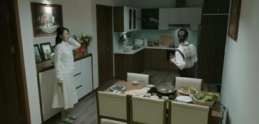 Khi đang chuẩn bị món ăn ở nhà, Lam Anh cảm thấy vô cùng hồi hộp. Khi nghe tiếng mở cửa, đoán Trung tá Kiên về cùng Tùng nên Lam Anh vội tô thêm son cho rạng rỡ.