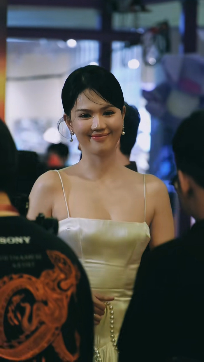 Trong những khoảnh khắc chưa qua chỉnh sửa, Ngọc Trinh xuất hiện với phong cách nữ tính, thanh lịch khi diện váy hai dây tông trắng ngà, thiết kế tối giản nhưng ôm sát phần thân trên. Trang phục giúp tôn lên bờ vai thon, xương quai xanh thanh mảnh cùng vòng eo gọn gàng - những điểm mạnh đã trở thành thương hiệu của cô suốt nhiều năm. Phần chân váy xòe nhẹ càng khiến tổng thể vóc dáng trông cao ráo, mềm mại khi di chuyển giữa đám đông.