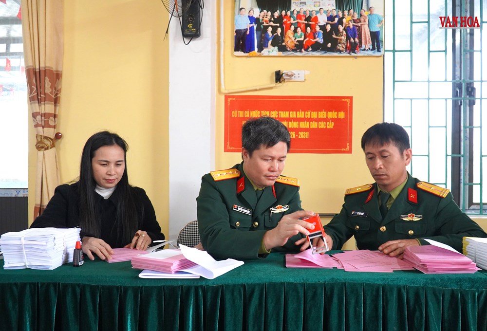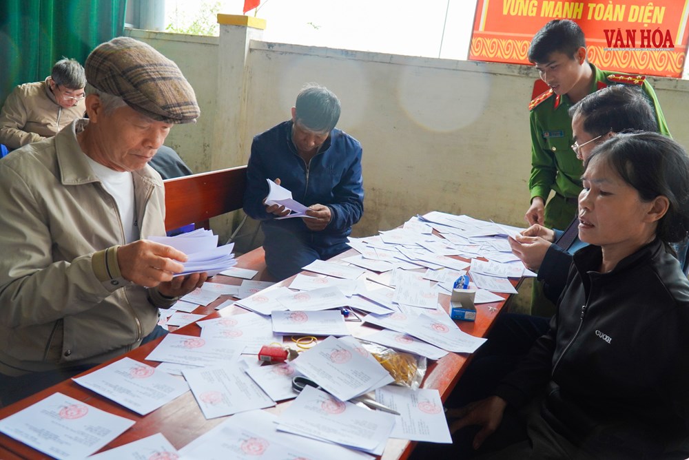 Người đối chiếu danh sách cử tri theo từng hộ dân, người kiểm tra lại thông tin cá nhân, người phân loại tài liệu. Từng tập phiếu sau khi hoàn tất được xếp gọn gàng để chuẩn bị chuyển sang các bước tiếp theo.