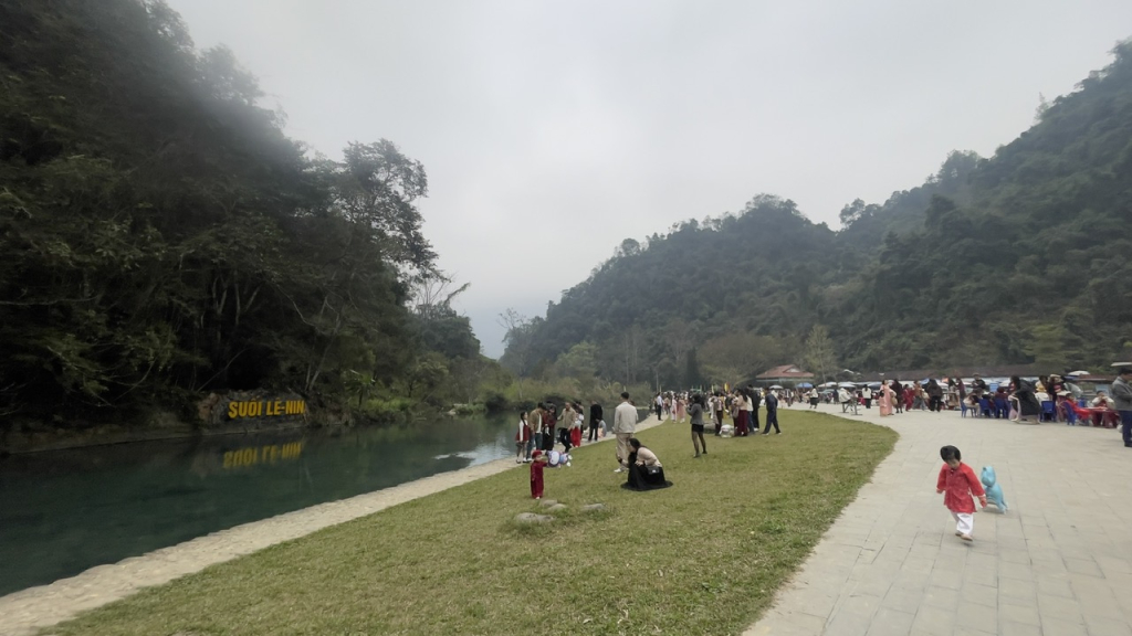 Cùng với không khí vui chơi sôi động tại khu vực trung tâm, nhiều người dân và du khách lựa chọn hành trình “về nguồn” đầu năm tại Khu di tích Quốc gia đặc biệt Pác Bó, xã Trường Hà. Dòng người thành kính dâng hương, tưởng niệm Chủ tịch Hồ Chí Minh tạo nên không gian trang nghiêm, lắng đọng giữa núi rừng hùng vĩ. Bên dòng suối Lê-nin trong xanh, trước hang Cốc Bó giản dị, mỗi bước chân như chậm lại, mỗi ánh mắt đều ánh lên niềm tự hào và xúc động. Đầu xuân, nhiều cơ quan, đơn vị, đoàn thể tổ chức dâng hương, báo công, kết hợp tham quan, giáo dục truyền thống cho thế hệ trẻ. Những câu chuyện về quãng thời gian Bác Hồ sống và làm việc tại đây được các hướng dẫn viên kể lại sinh động, giúp du khách hiểu rõ hơn về chặng đường cách mạng gian khó nhưng đầy ý chí kiên cường của dân tộc. Nhiều gia đình kết hợp chuyến du xuân với việc giáo dục con em về truyền thống “uống nước nhớ nguồn”, khơi dậy niềm tự hào dân tộc. Những bức ảnh lưu niệm bên suối Lê-nin, dưới tán rừng xanh mát trở thành kỷ niệm ý nghĩa trong những ngày đầu năm mới.