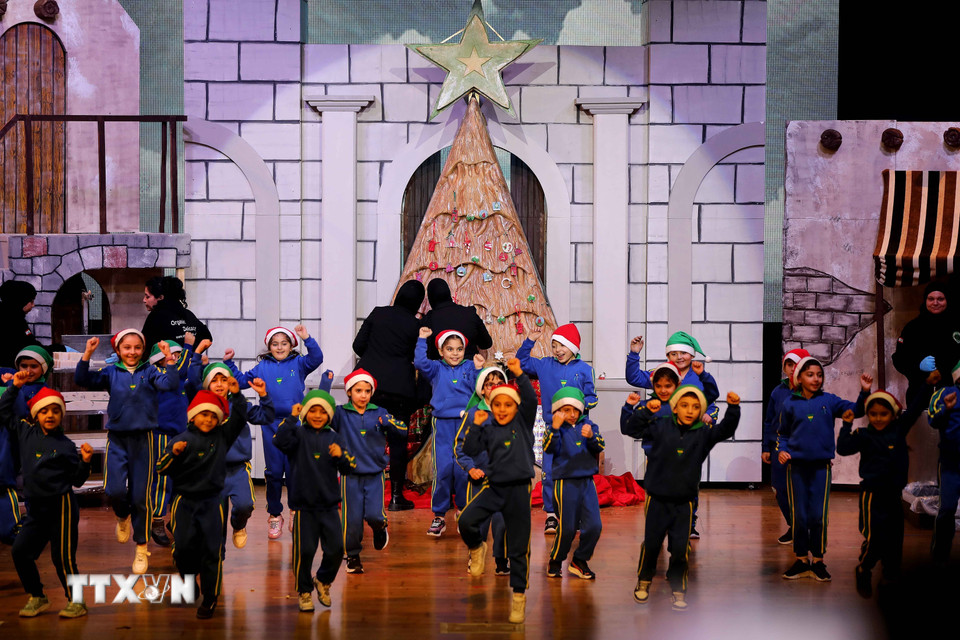 Các em nhỏ biểu diễn văn nghệ đón Giáng sinh tại Beirut, Liban. (Ảnh: THX/TTXVN)