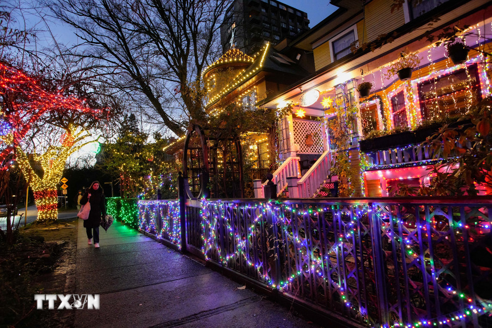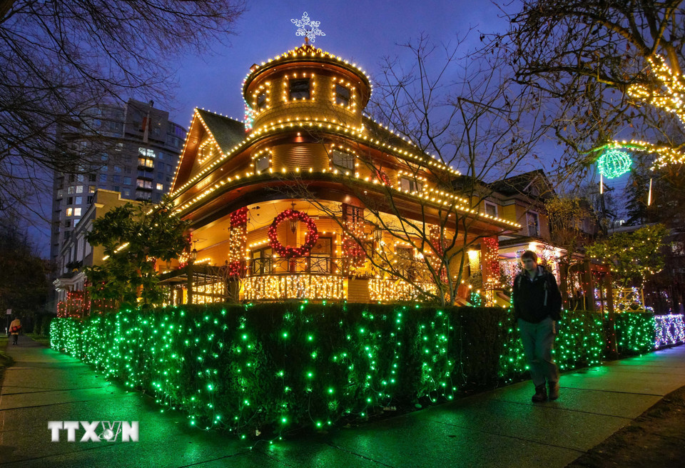 Ngôi nhà được trang hoàng lung linh đón Giáng sinh tại Vancouver, British Columbia, Canada. (Ảnh: THX/TTXVN)