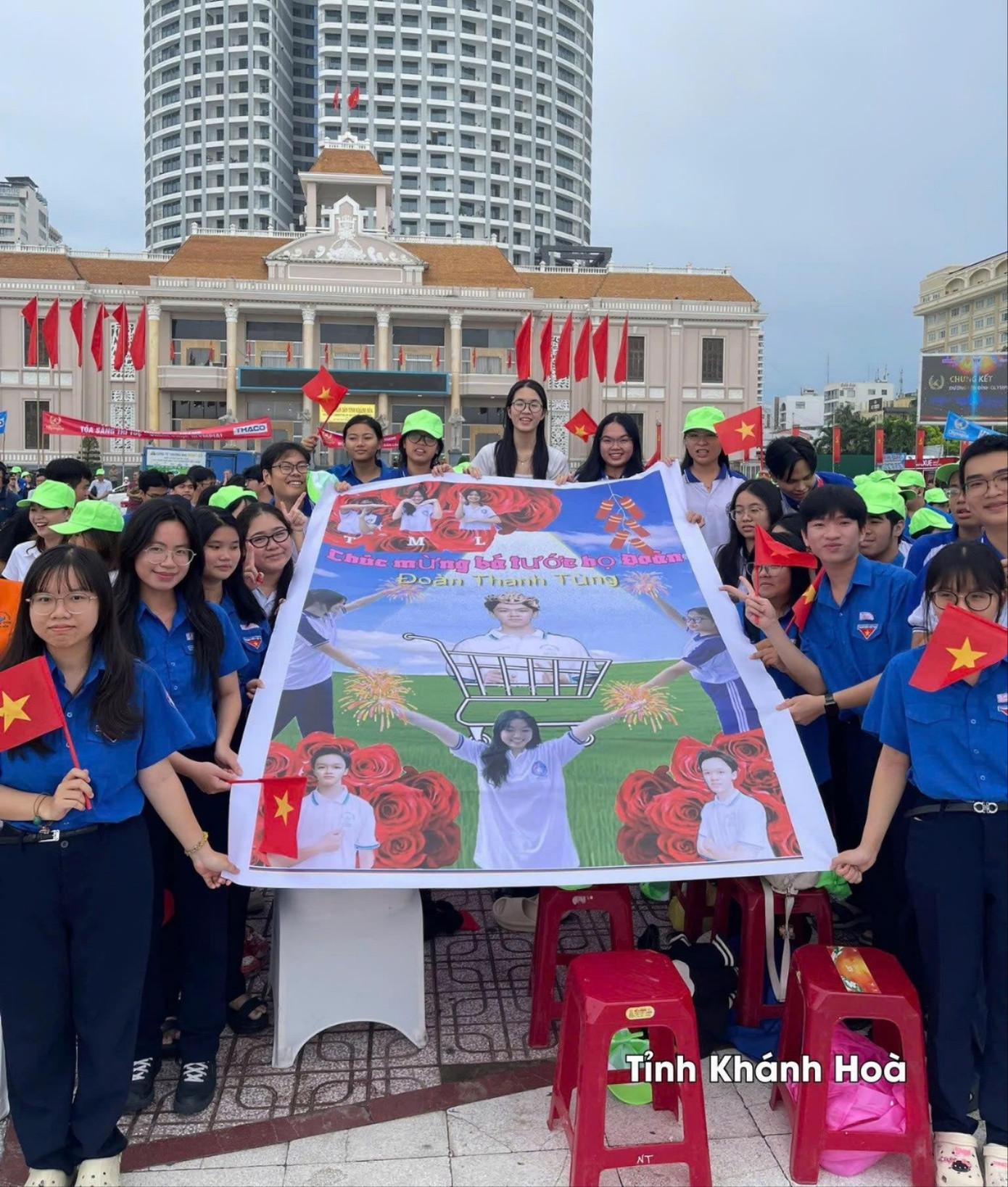 Cổng Đoan Môn rực rỡ sắc cờ từ các thầy cô, học sinh trường THPT chuyên Hà Nội - Amsterdam với sức mạnh tinh thần to lớn gửi đến chàng trai Trần Bùi Bảo Khánh.