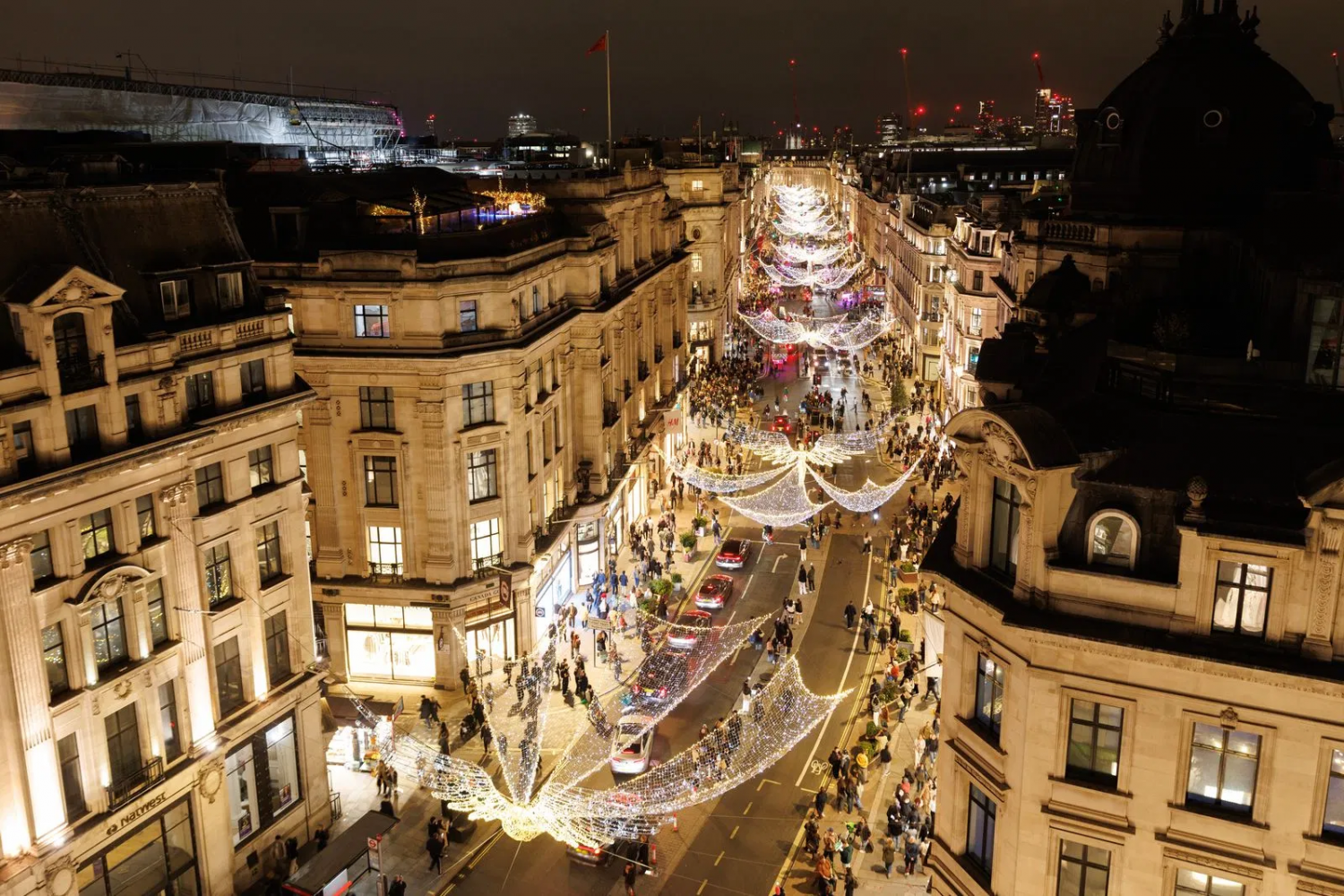 Đèn Giáng sinh trên phố Regent vào ngày 06/11/2025 tại London, Anh. (Ảnh: Dan Kitwood/Getty Images)