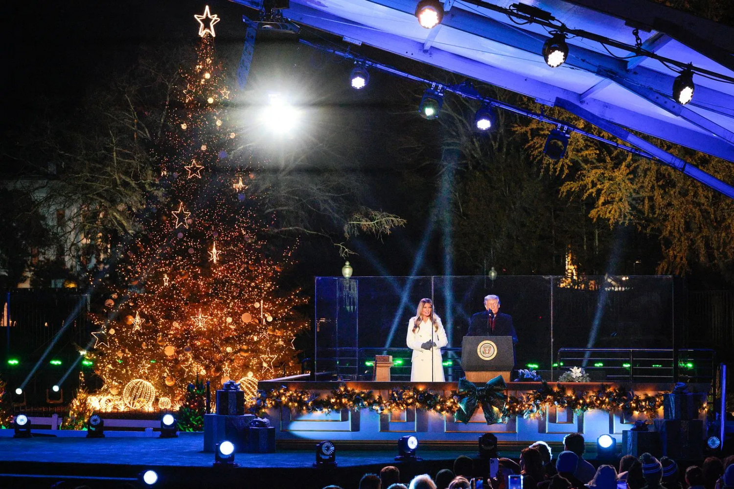 Tổng thống Mỹ Donald Trump và Đệ nhất phu nhân Melania Trump tham dự Lễ thắp sáng cây thông Noel quốc gia lần thứ 103 tại khu vực Ellipse của Nhà Trắng vào ngày 4/12/2025 tại Washington, DC.